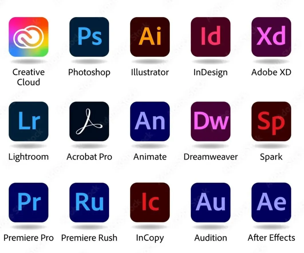 转到Adobe这边,有人觉得它们的图标干净简洁,用两个字母如Ps代表Photoshop、Ai代表Illustrator,看起来专业又统一。