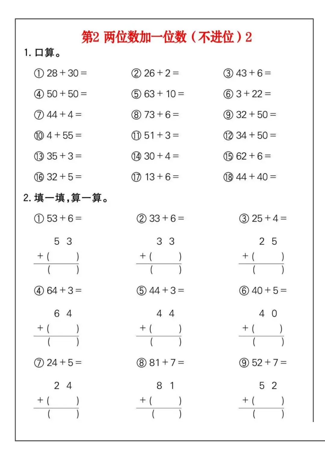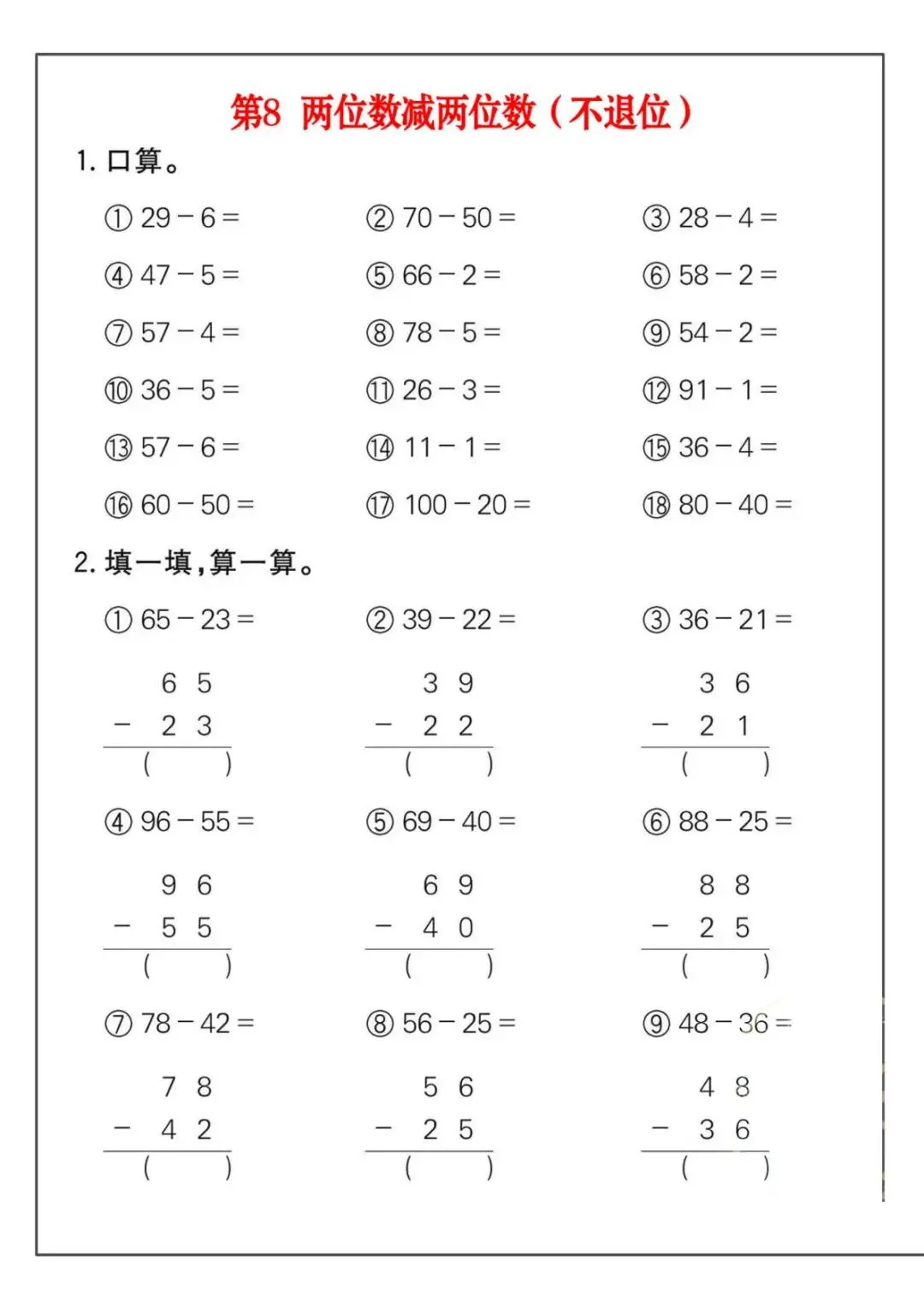 今天给大家带来的是26春新版一年级下册数学《100以内加减法练习26套》口算专项练习题 电子版附链接可打印,免费分享给大家!