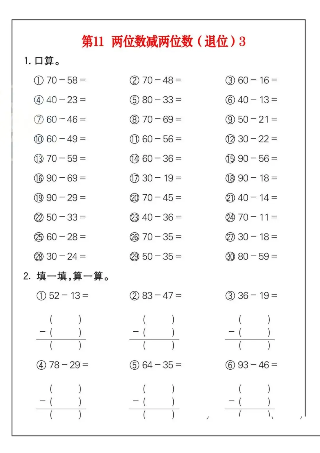 电子版直接领!一年级下册数学《100以内加减法练习26套》,每天10分钟,口算超厉害!