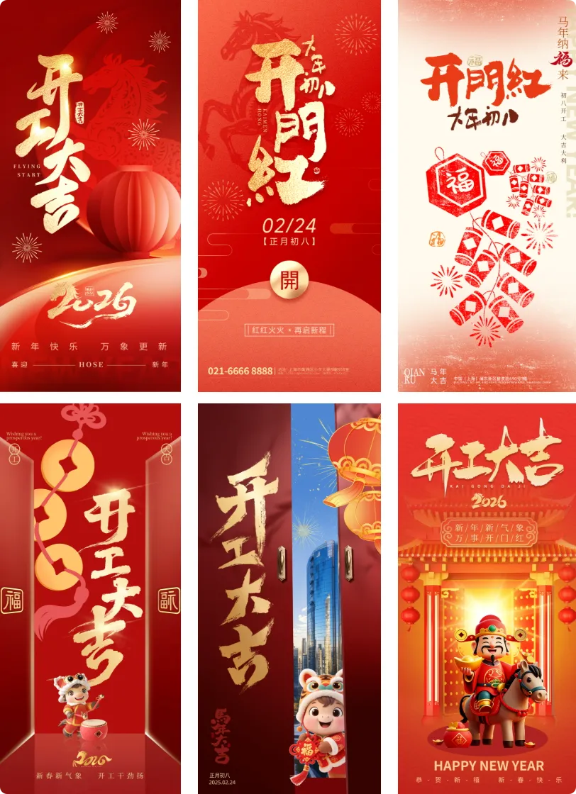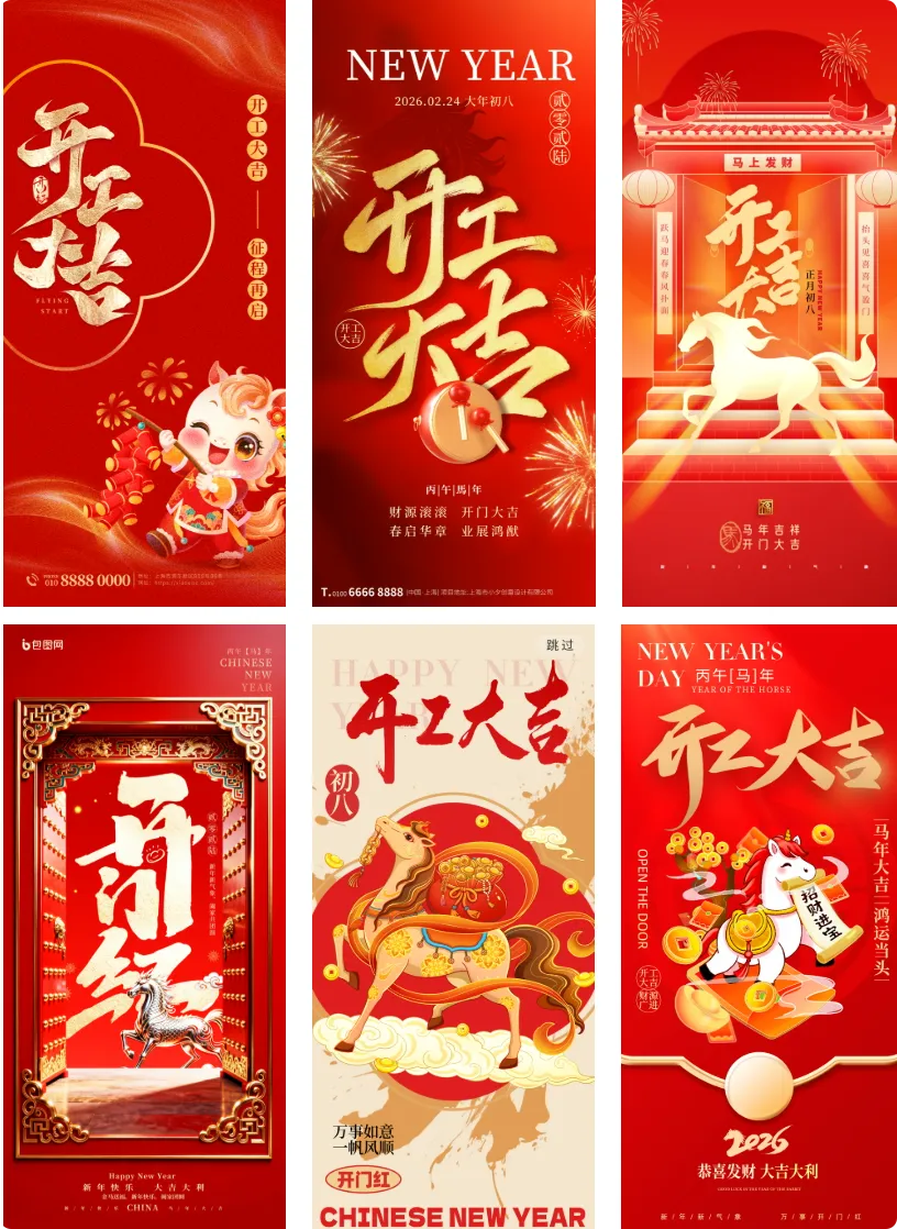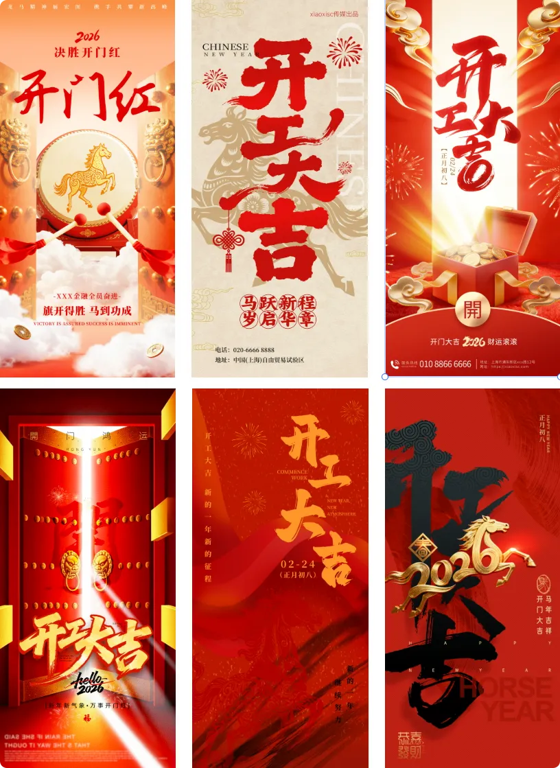 【免费下载】49款2026马年新春开工大吉模板合集(含PSD可编辑源文件)