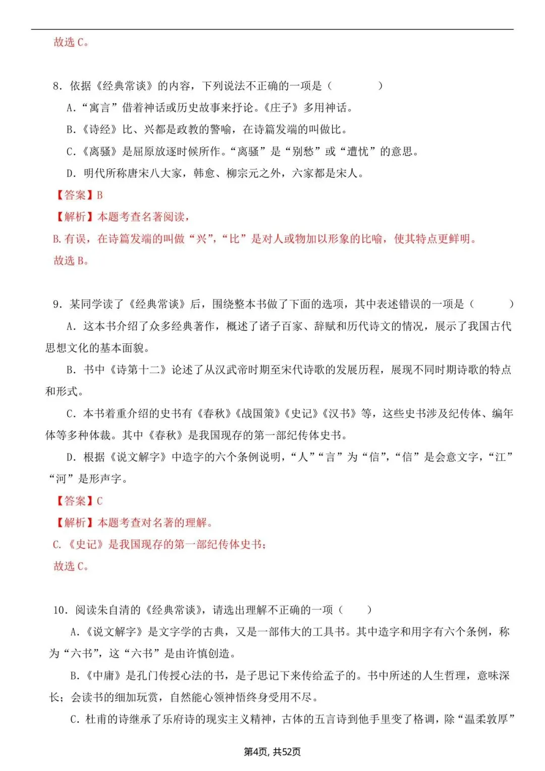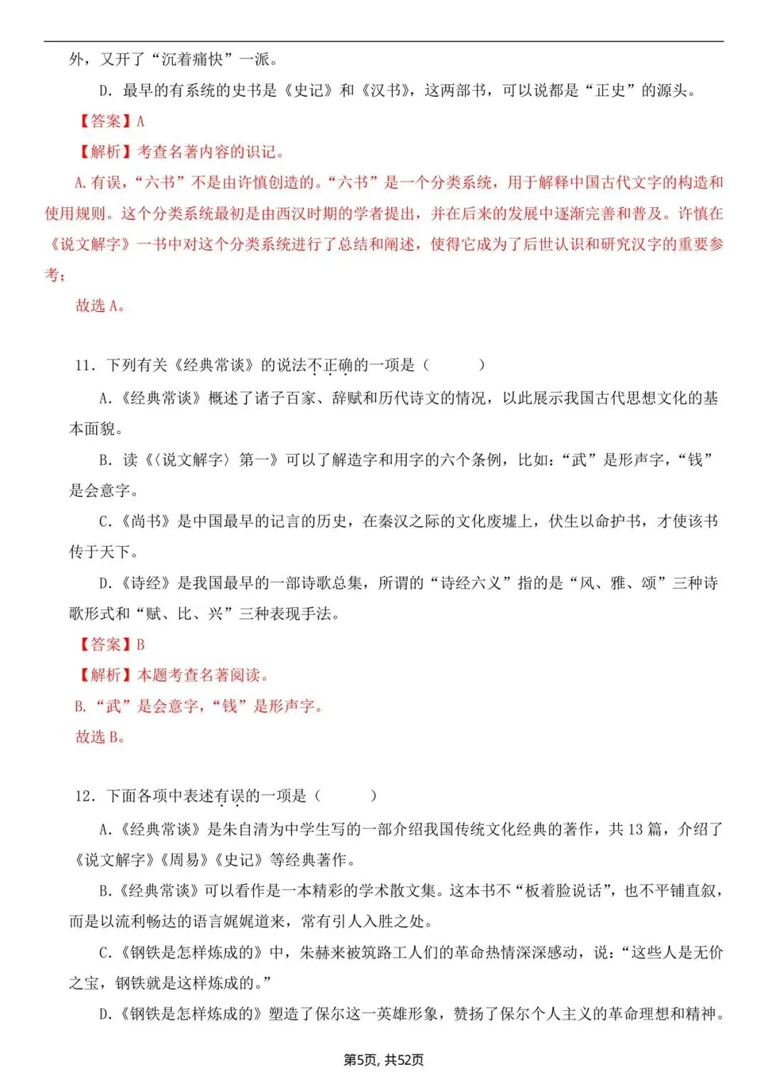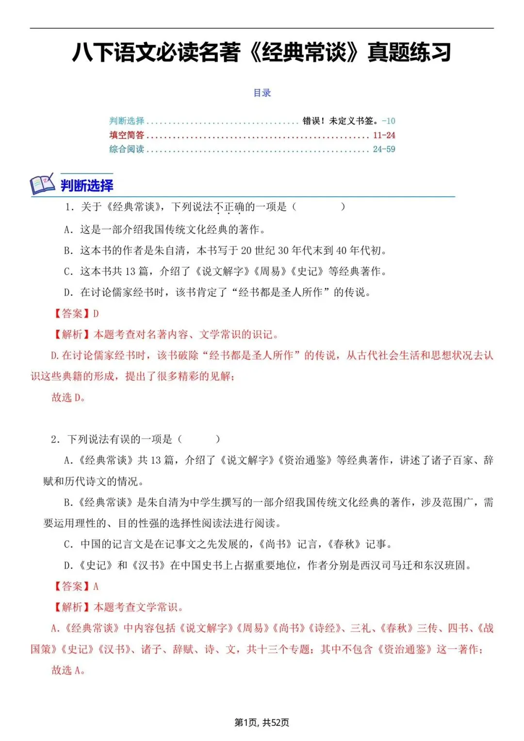 八年级下册语文必读《名著》真题练习(电子版可打印)
