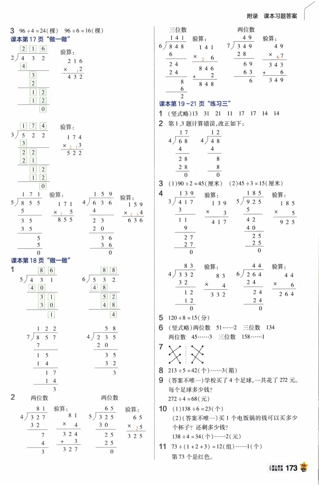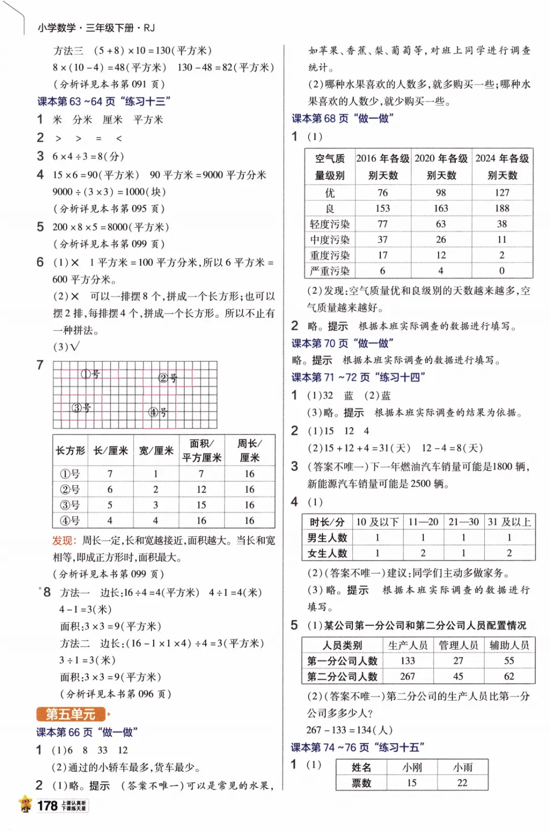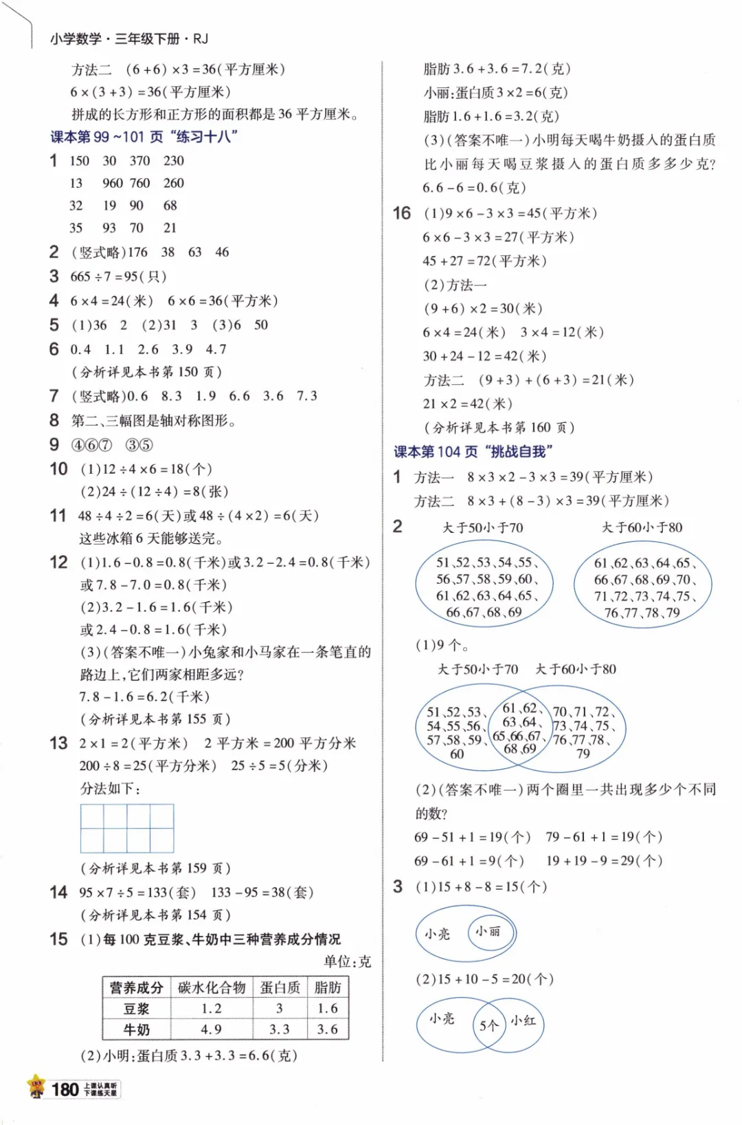全册完整答案:涵盖三年级下册数学所有课后习题