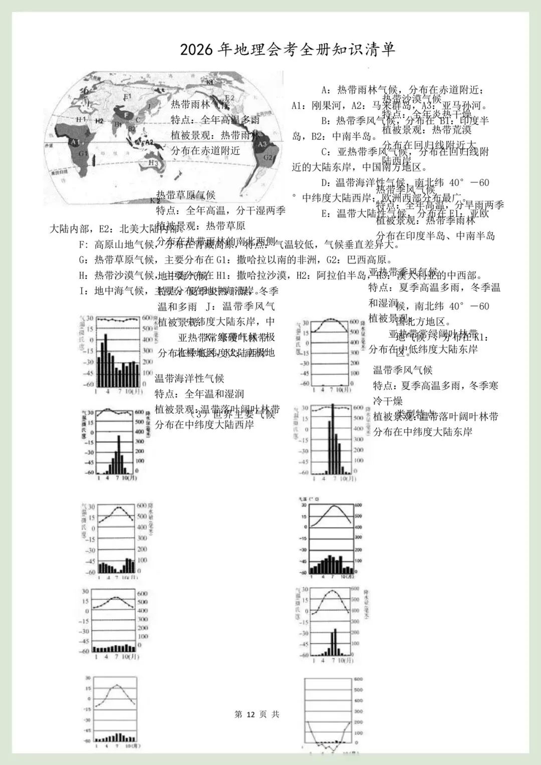 2026年【地理会考】全册知识清单,电子版可打印!