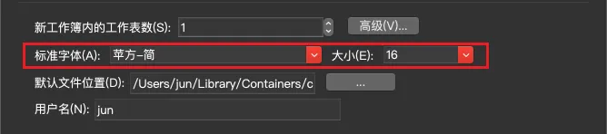 同样在 「标准字体」 处,设置你偏好的字体和字号(建议16号或以上)。