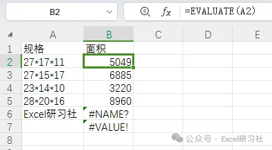 用的最多的场景就是示例中看到的包装箱规格了,有了这个函数就可以不用再提取长、宽、高数据,直接用公式就能完成计算了。需要注意的是,如果是不能计算的文本,或者是空单元格,函数会返回错误值。