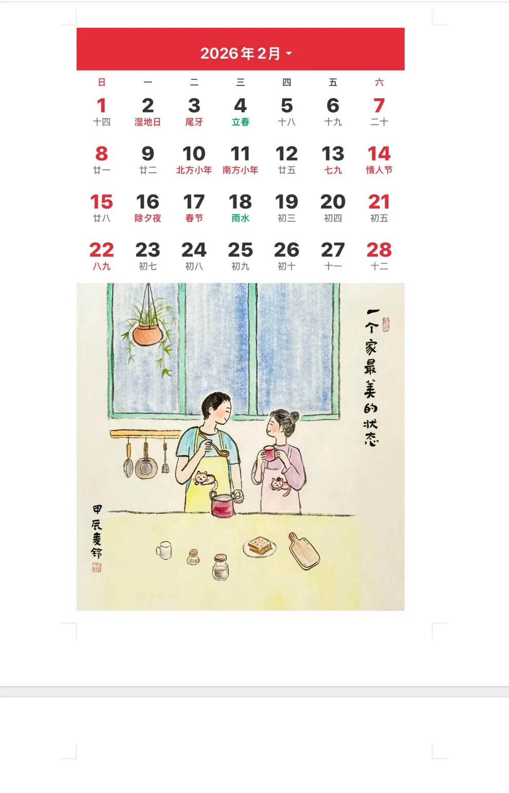 2026年日历 年历、月历、周历、日历四合一全年日历 星期一开始 带农历节假日调休