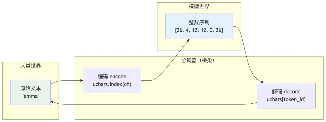 分词器(Tokenizer)本身非常简单——就是一个字符到整数的查找表。但正是这个简单的桥梁,让模型能够用纯数学运算来”理解”和”生成”文本。