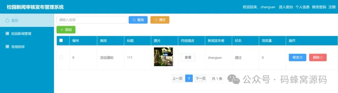 【含文档+PPT+源码】基于springboot加vue 前后端分离的校园新闻审核发布管理系统
