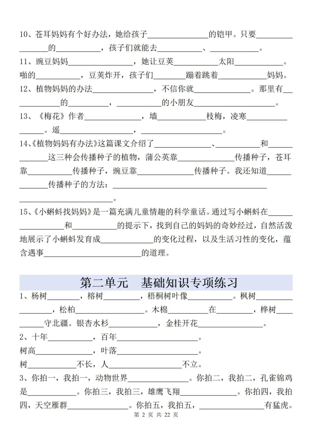 2025秋人教部编版二年级上学期语文全册重点课文内容填空,帮助孩子针对性巩固全册重点课文、古诗及日积月累中的核心语句,强化字词默写能力与课文记忆,轻松应对期末考试,需要的家长抓紧领取一份打印出来让给孩子做一做吧~