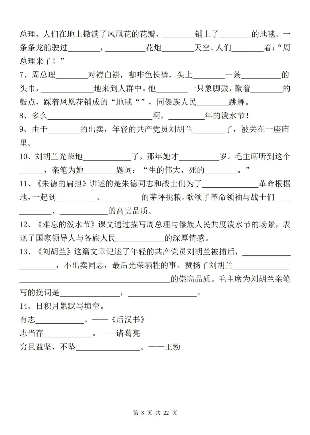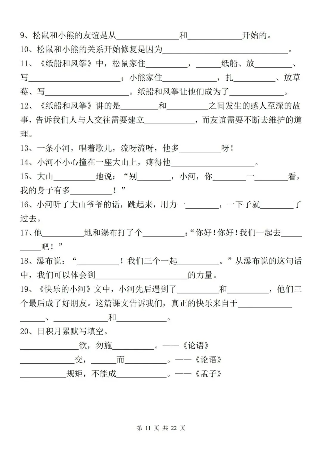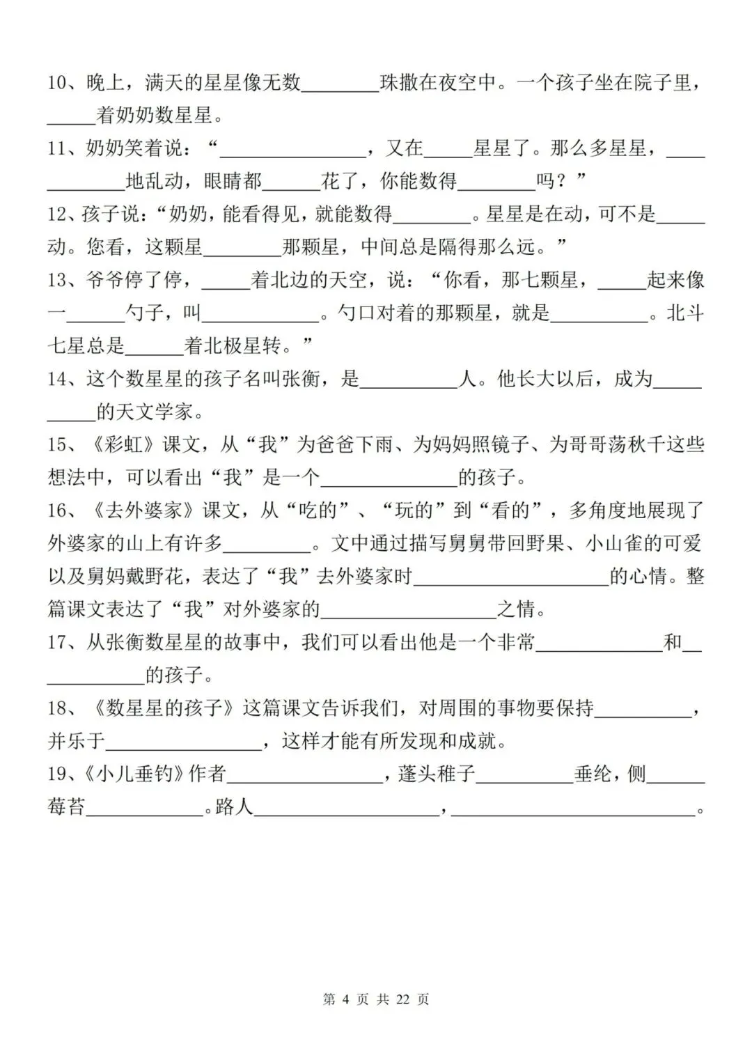 新二年级上册语文全册重点课文内容填空,电子版可下载打印