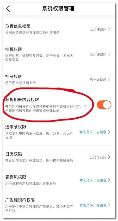 避免应用在本地分析相册内容(如识别照片主题、地点、人物),降低敏感信息泄露风险。