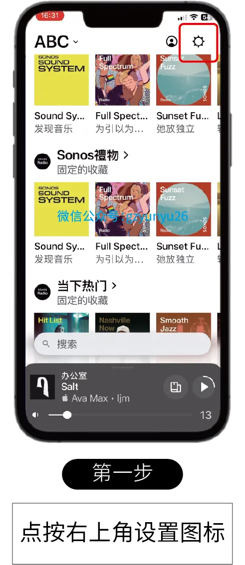 打开手机上的黑底白字最新版本Sonos App,准备进行系统配置。