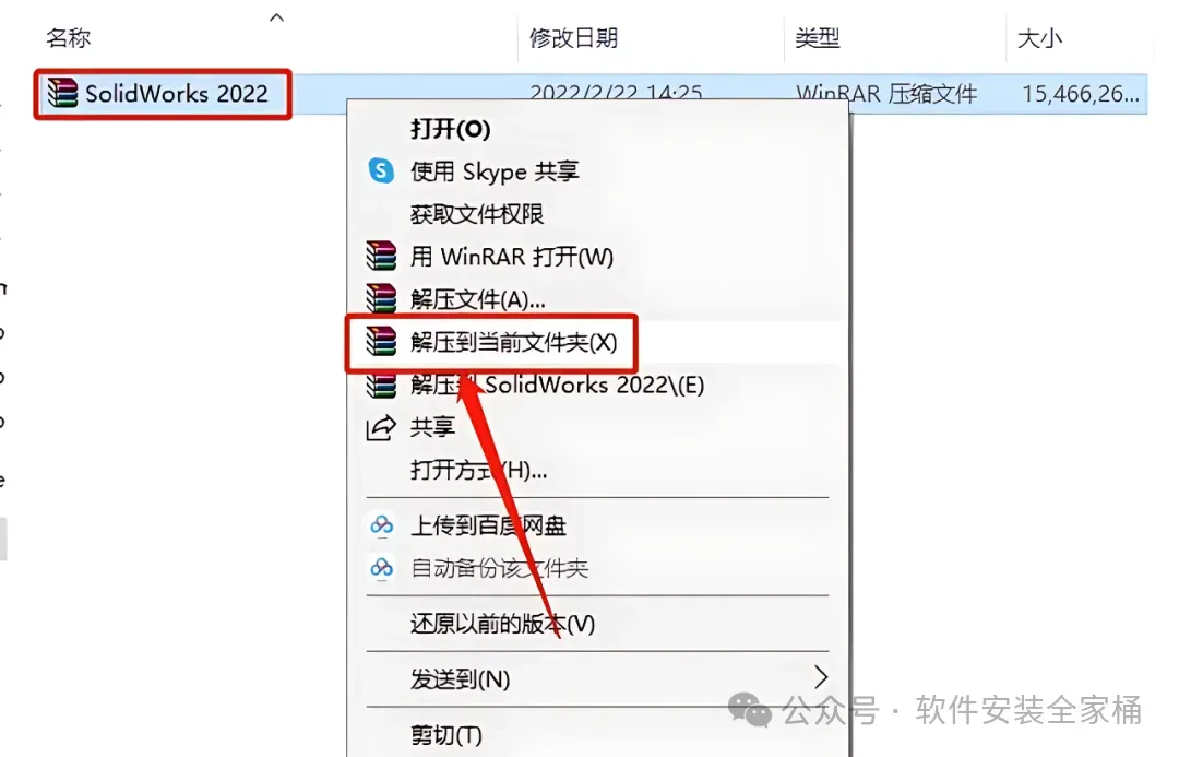 1.打开下载的SolidWorks软件安装包,鼠标右击压缩包选择【解压到当前文件夹】。