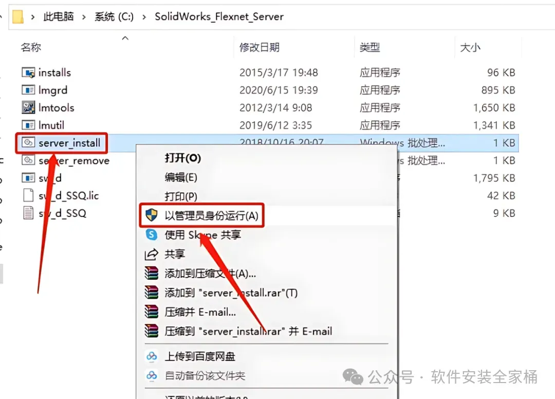 12.鼠标右击【server_install】程序,选择【以管理员身份运行】。