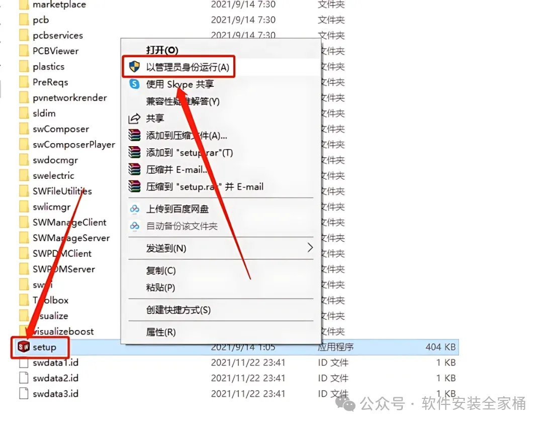 15.鼠标右击【setup】安装程序,选择【以管理员身份运行】。