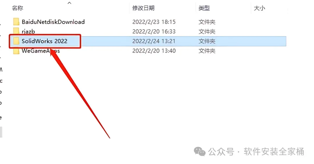 2.打开解压好的【SolidWorks 2022】文件夹。