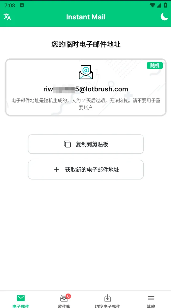 Instant7.4.0临时邮箱注册隐私网站可生成goo邮箱