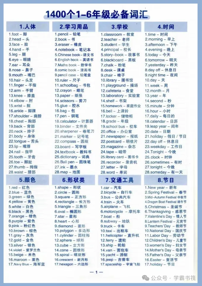 2026年最新版小学英语《必背1400单词》PDF电子版(可下载打印)