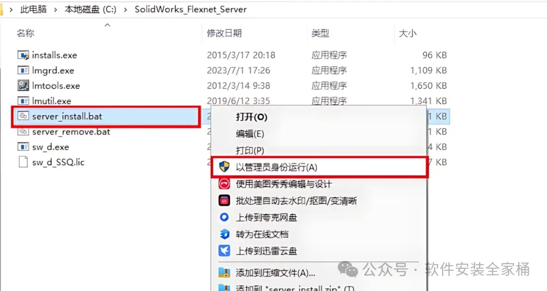 9、鼠标右击【server_install】程序,选择【以管理员身份运行】。