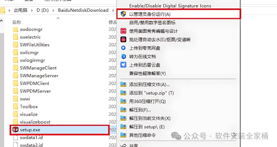 11、返回到解压的【SolidWorks 2025】文件夹中,然后打开【Setup】文件夹。