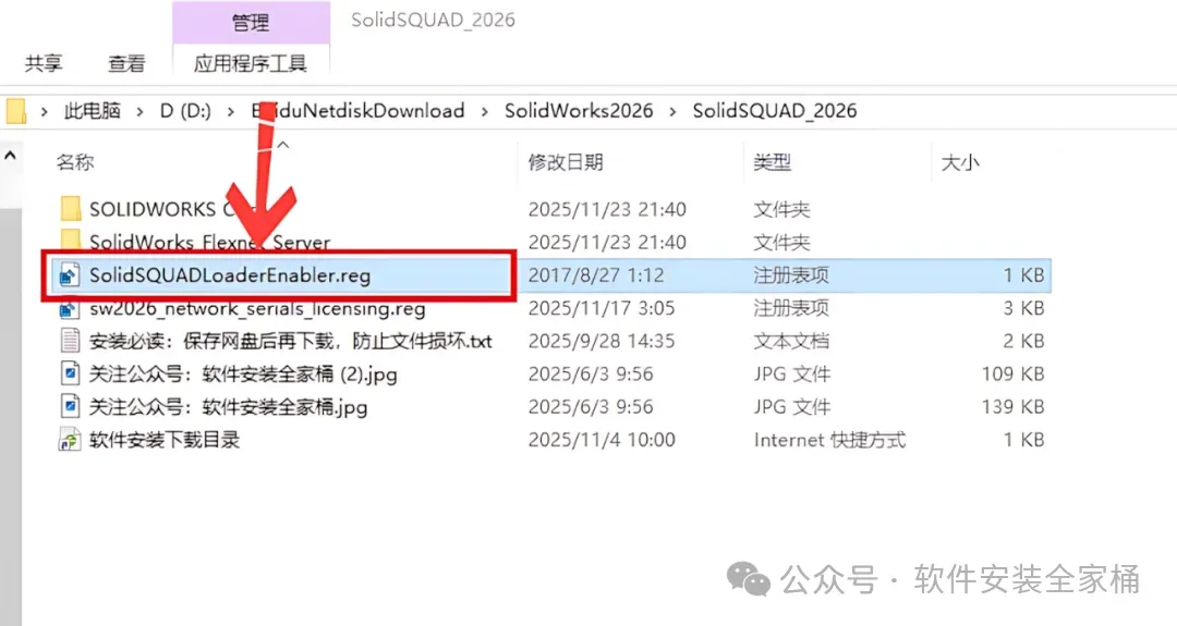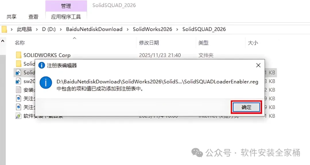 21、返回到解压的【SolidWorks 2026】文件夹中,然后打开【SolidSQUAD_2026】文件夹。