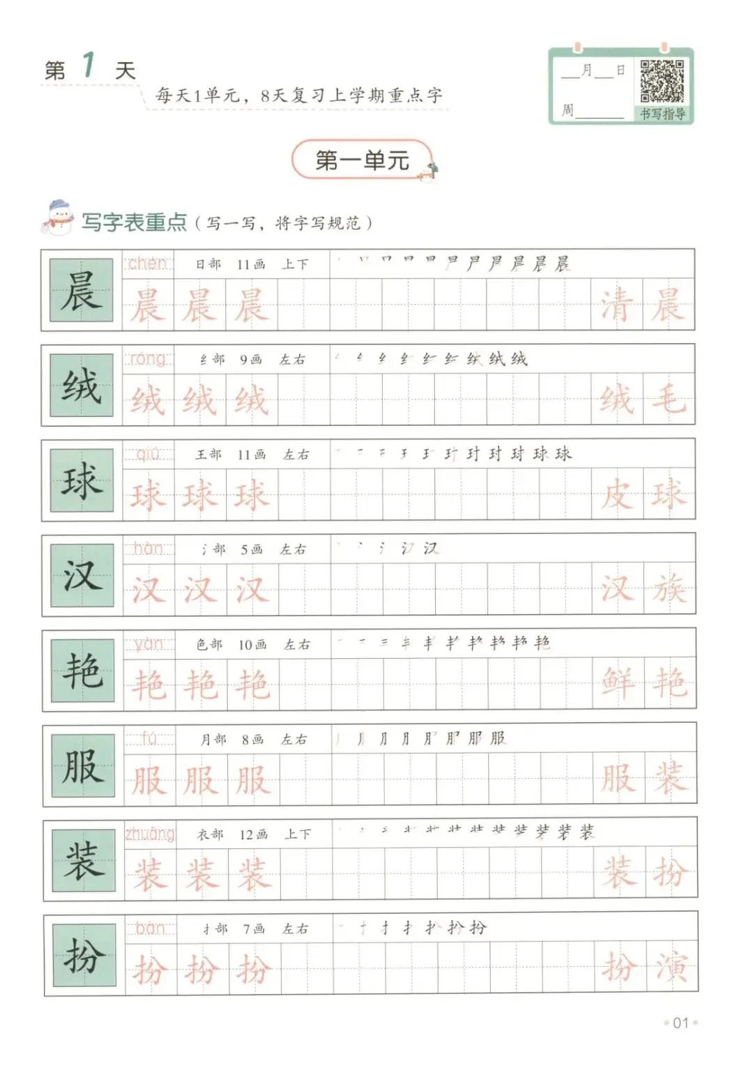 【硬笔】3年级 |《一本寒假练字帖》(电子版,可打印)