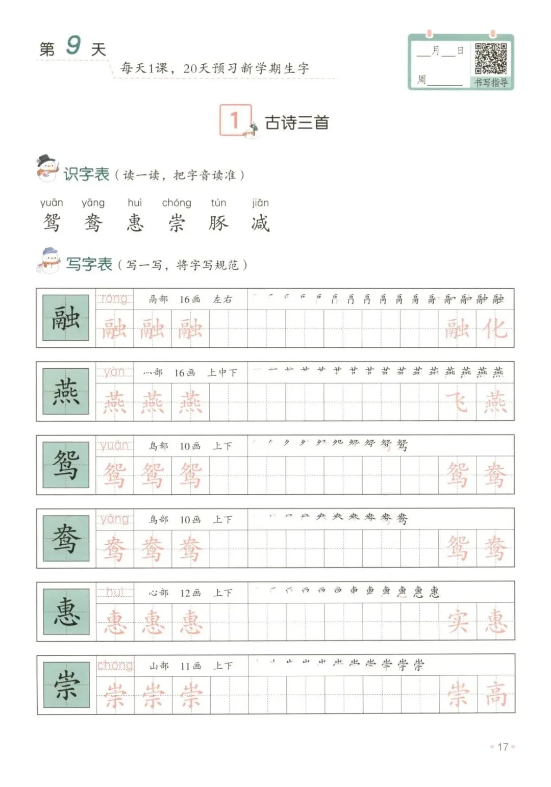 本站文章均为手工撰写未经允许谢绝转载:夜雨聆风 » 【硬笔】3年级 |《一本寒假练字帖》(电子版,可打印)