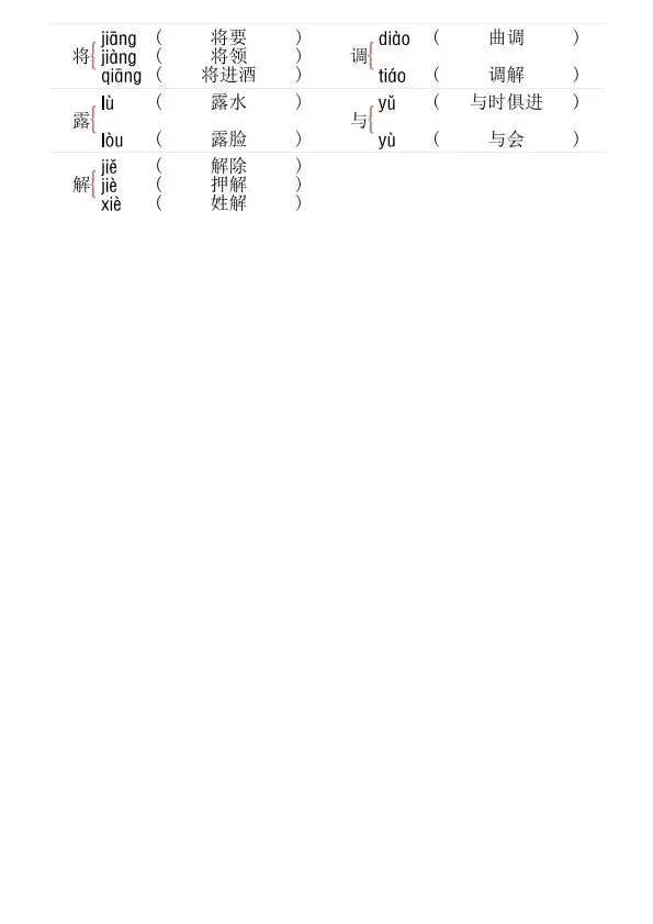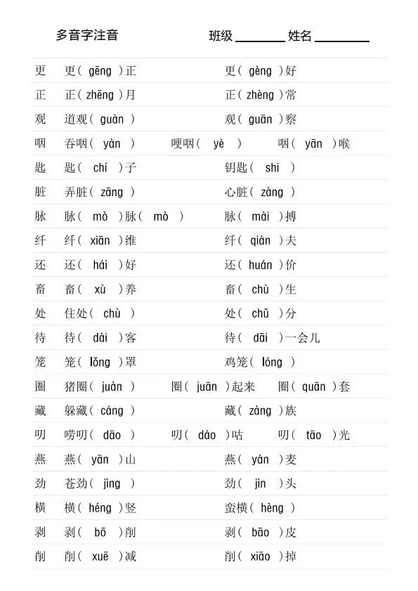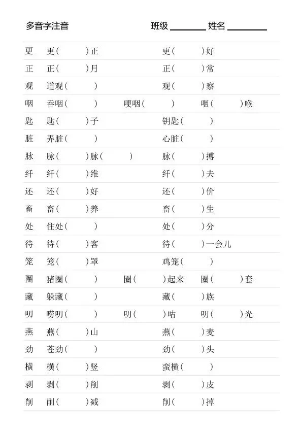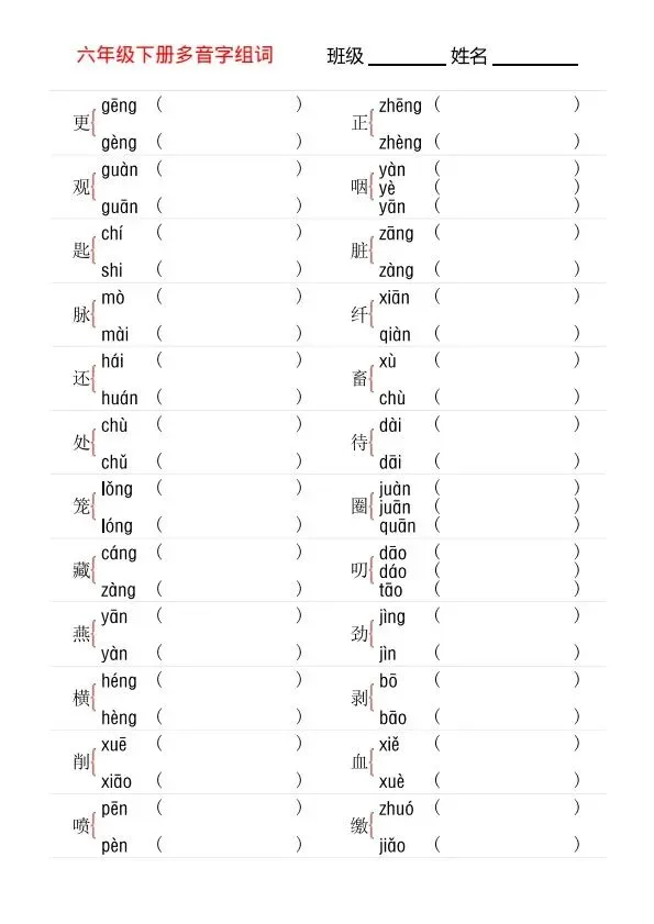 六年级下册语文常考多音字组词练习(完整电子版可打印)
