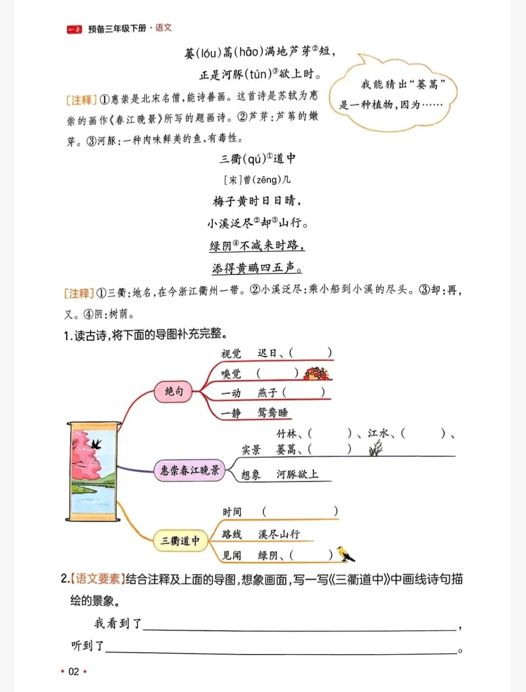 26春 一本预备 语文1-6下‖电子版可下载打印