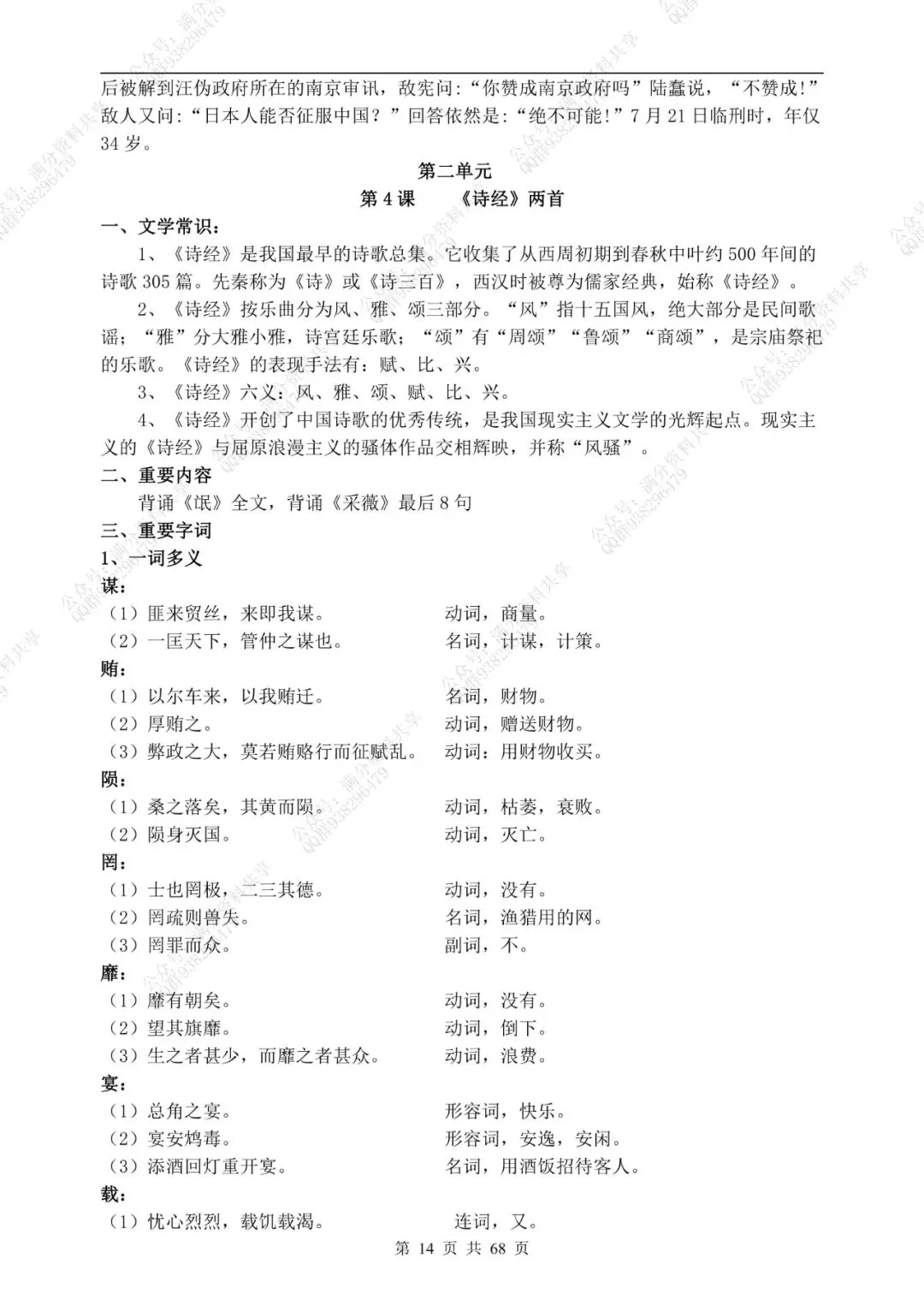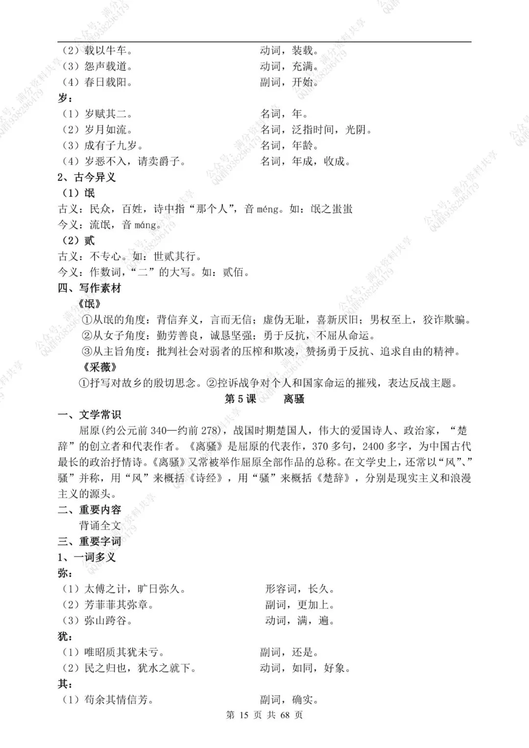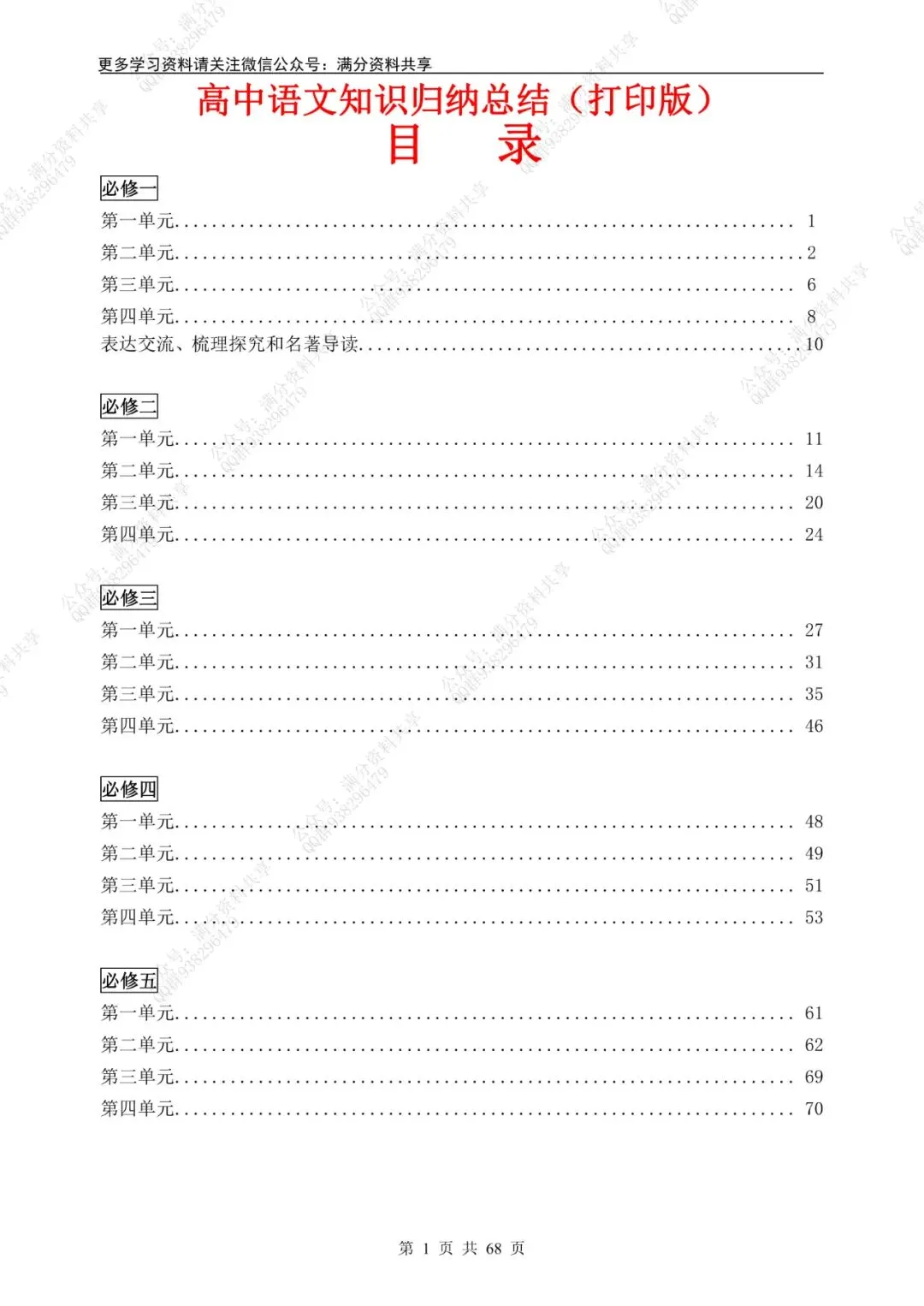 超详细高中语文知识点归纳汇总(pdf分享) 点击图片可观看高清版,文末有获取打印版方式 (完整版68页,部分展示) 领取完整电子版: ①:点一点右下角的“赞”和“在看”,感谢! ②:点击“关注”回复“高中资料”获取资料 点击下方“公众号”关注,可以进入主页哦!