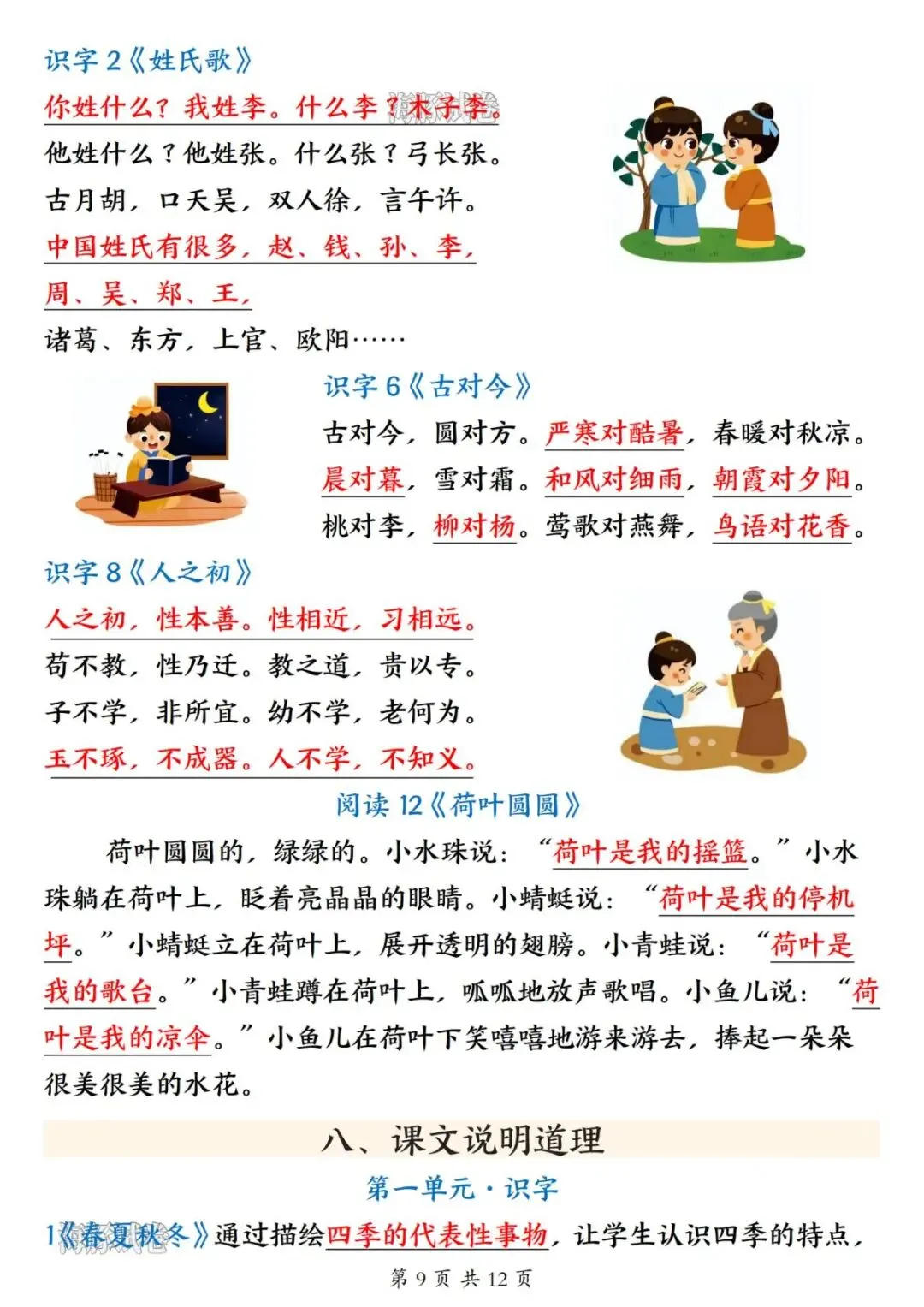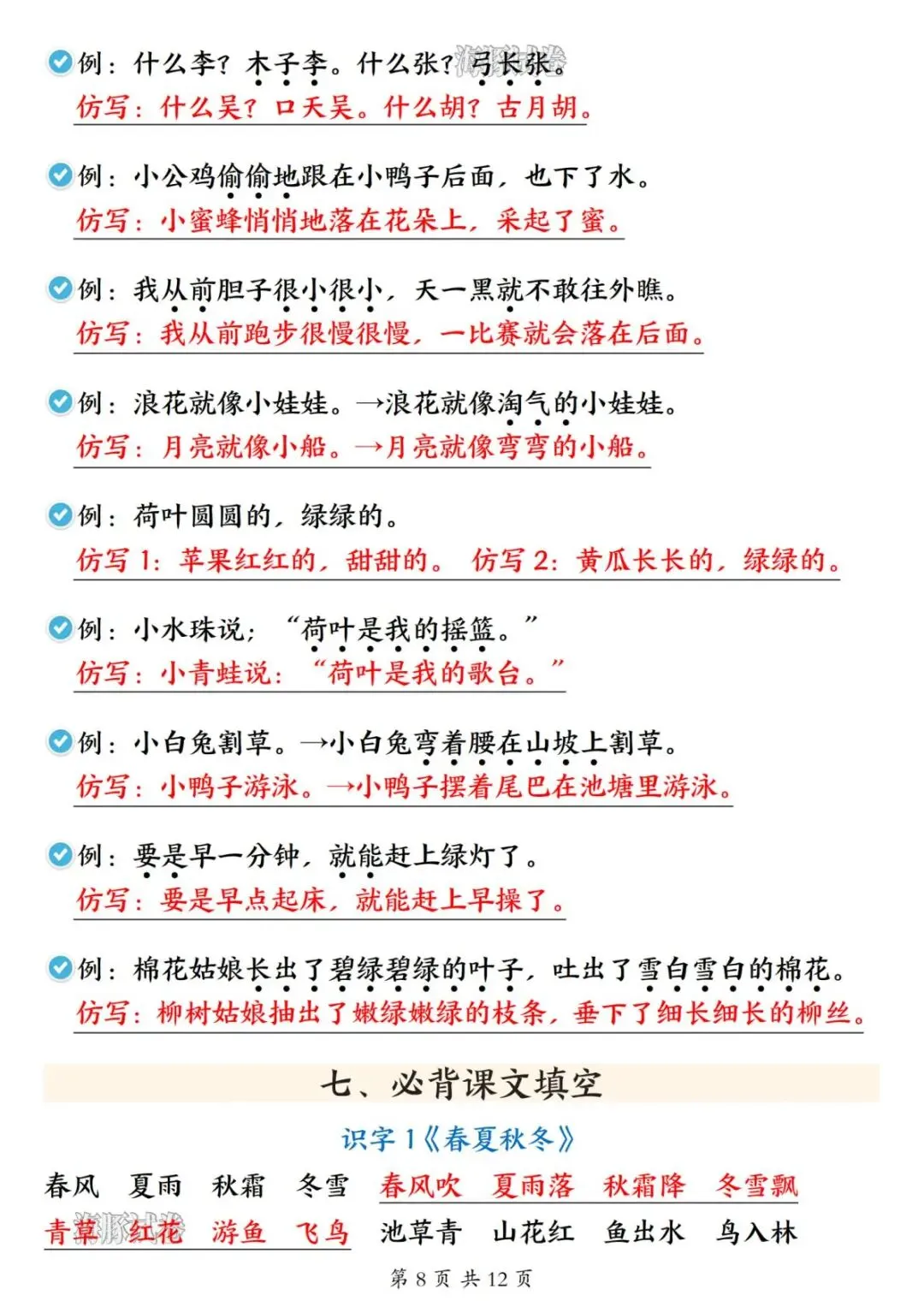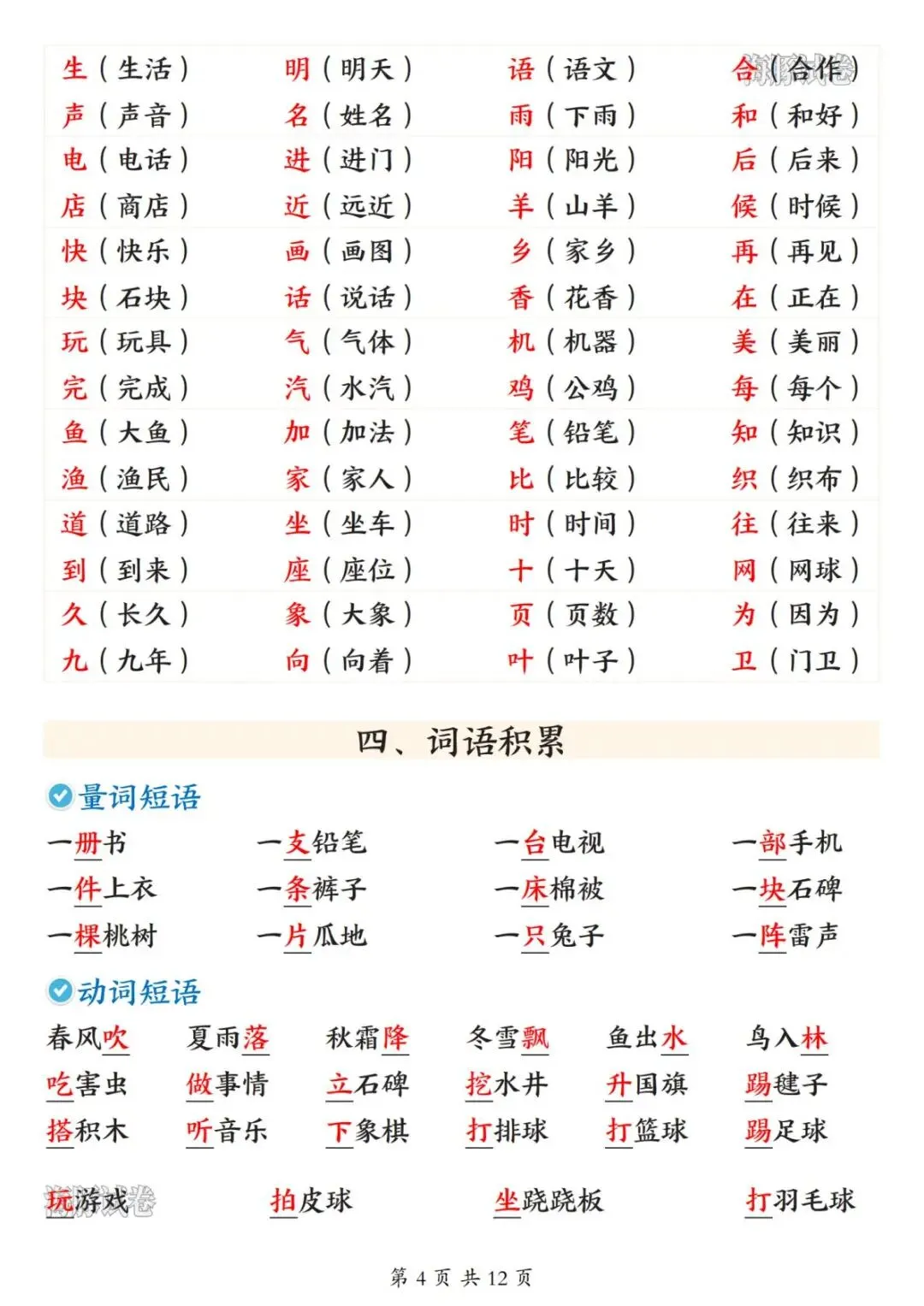 26春一年级下册语文寒假预习知识点汇总-电子版可打印