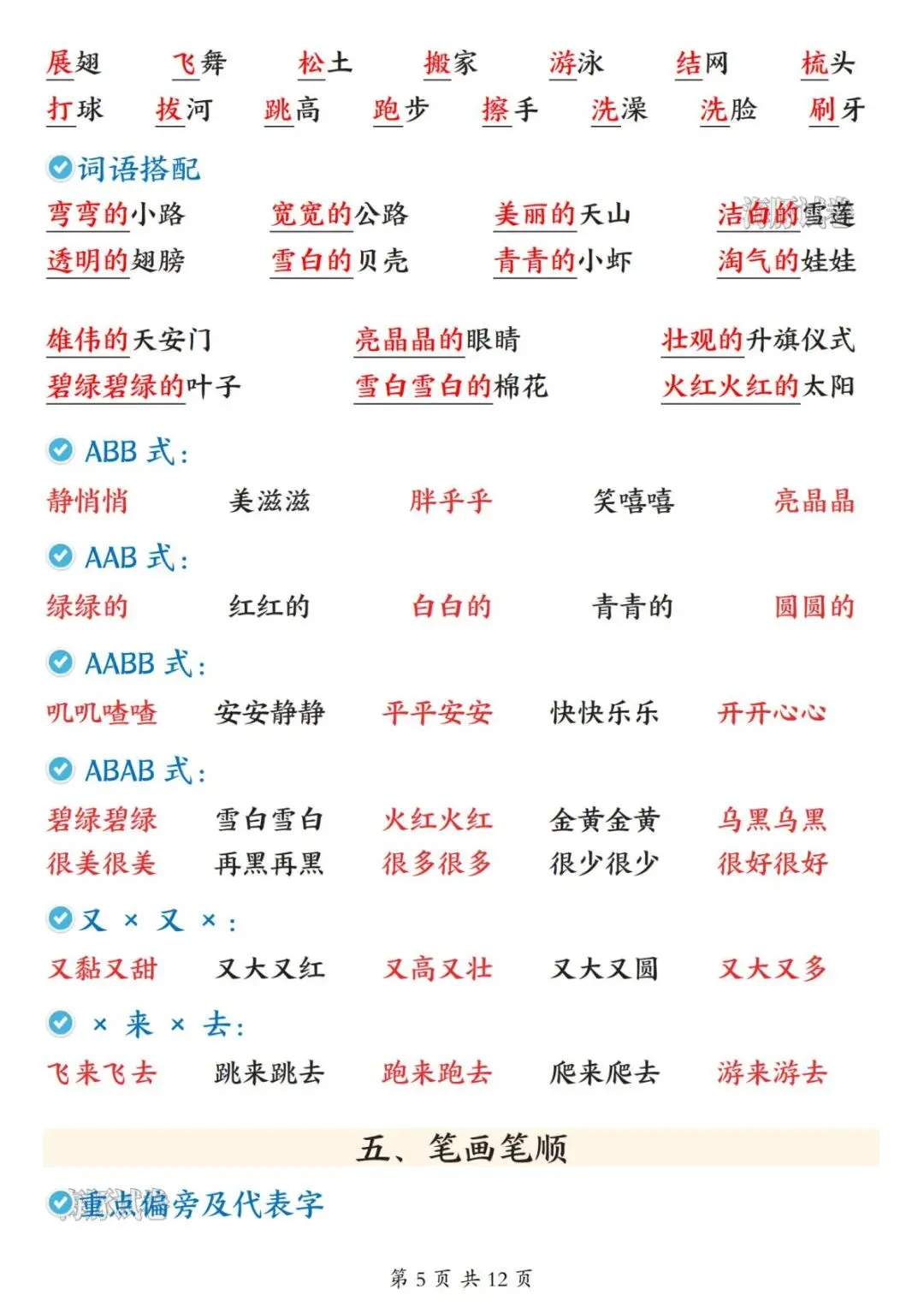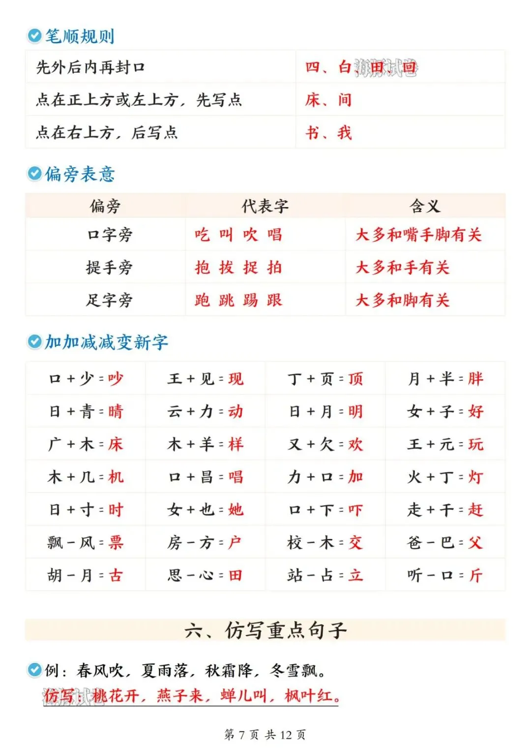 包含日积月累、课内重点字词归纳、词语积累、笔画笔顺等、必背课文内容填空、阅读等,寒假在家可打印出来给孩子预习一下课本知识。