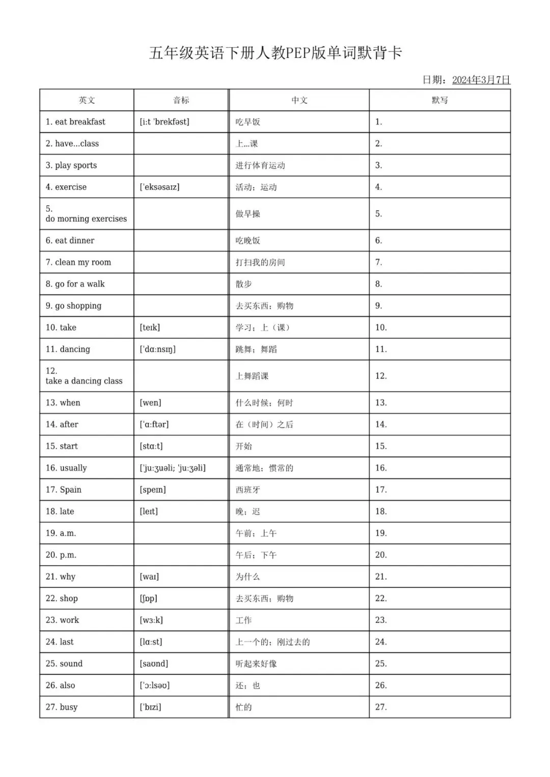 ●人教PEP版五年级英语下册高频考点每日一练(24天),免费下载