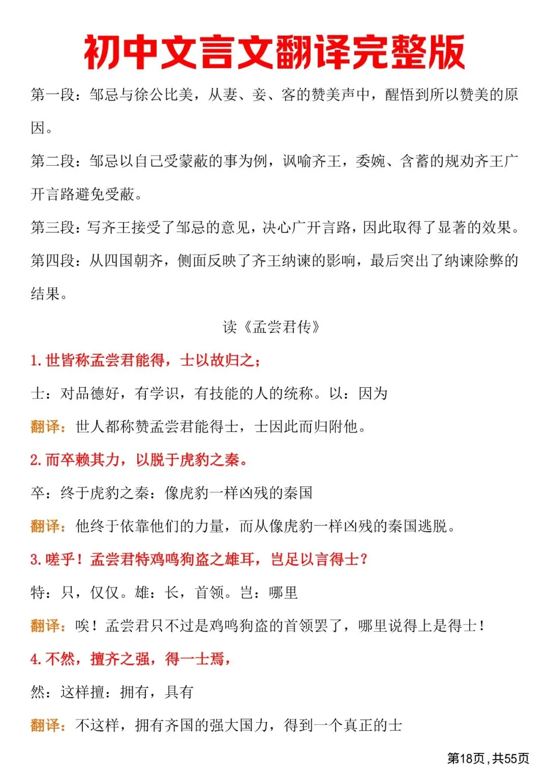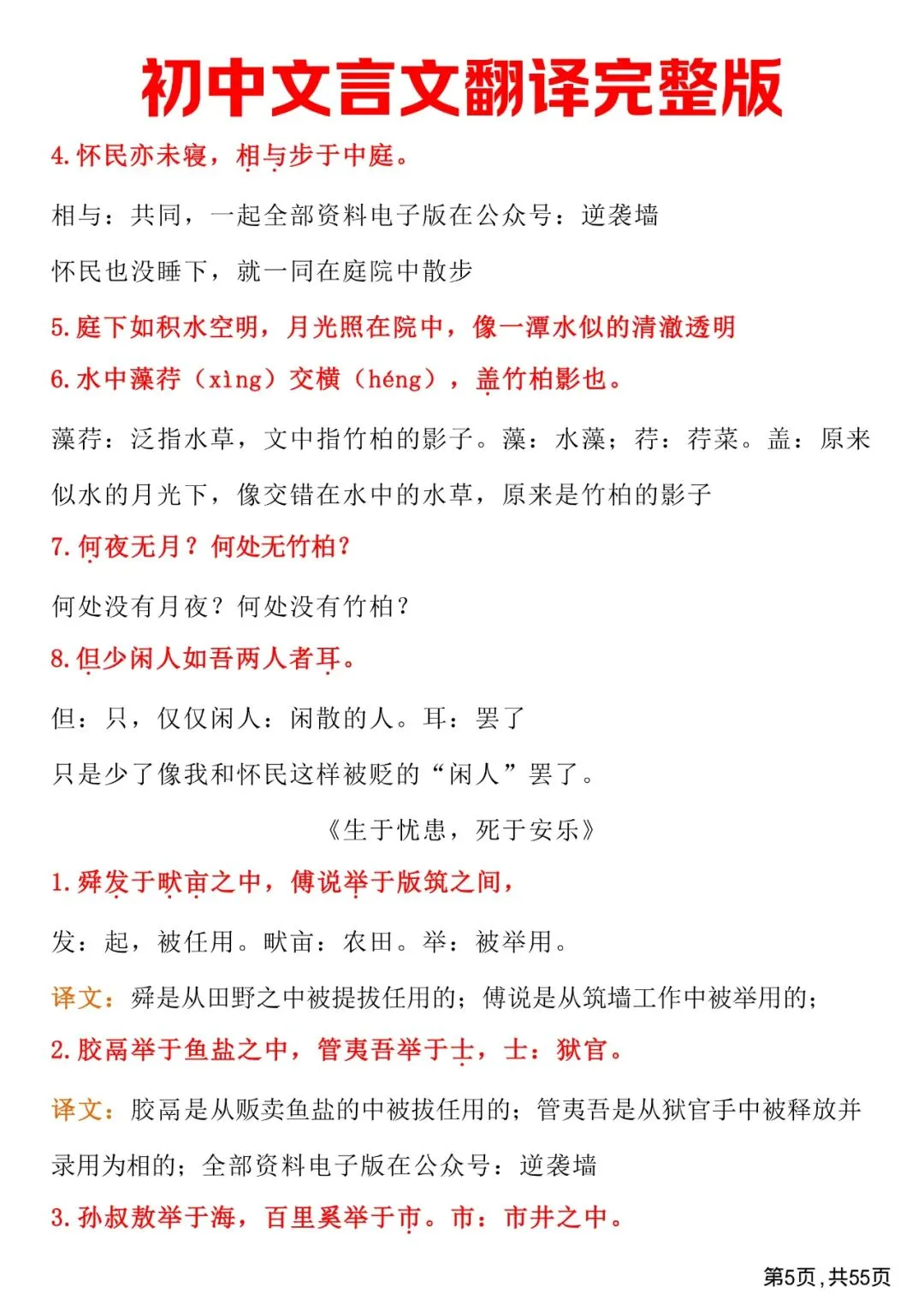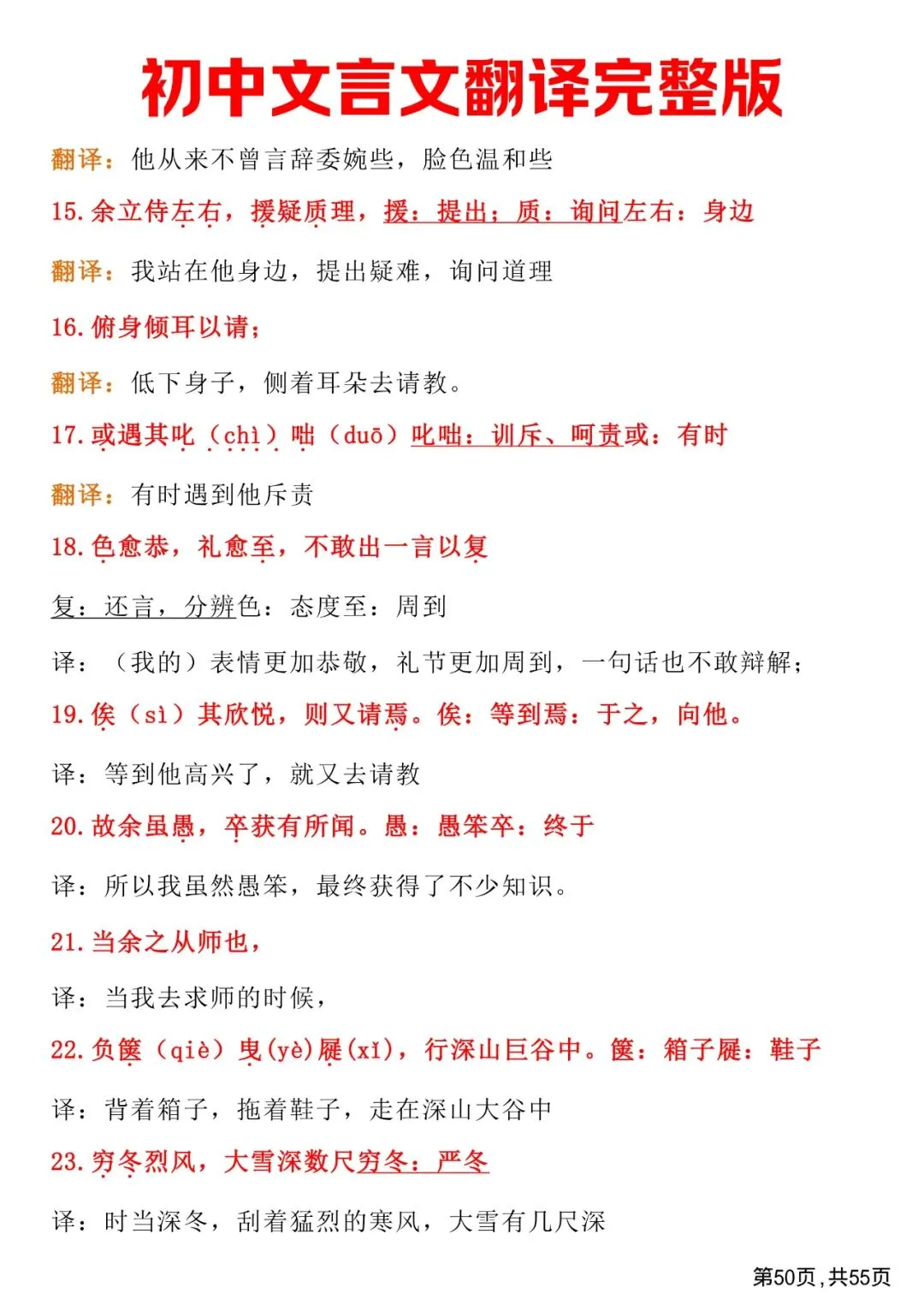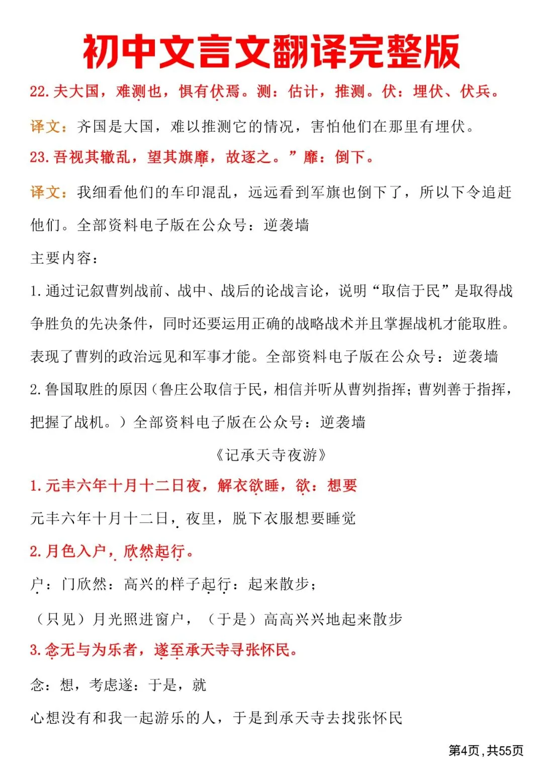 初中文言文翻译完整版,免费下载