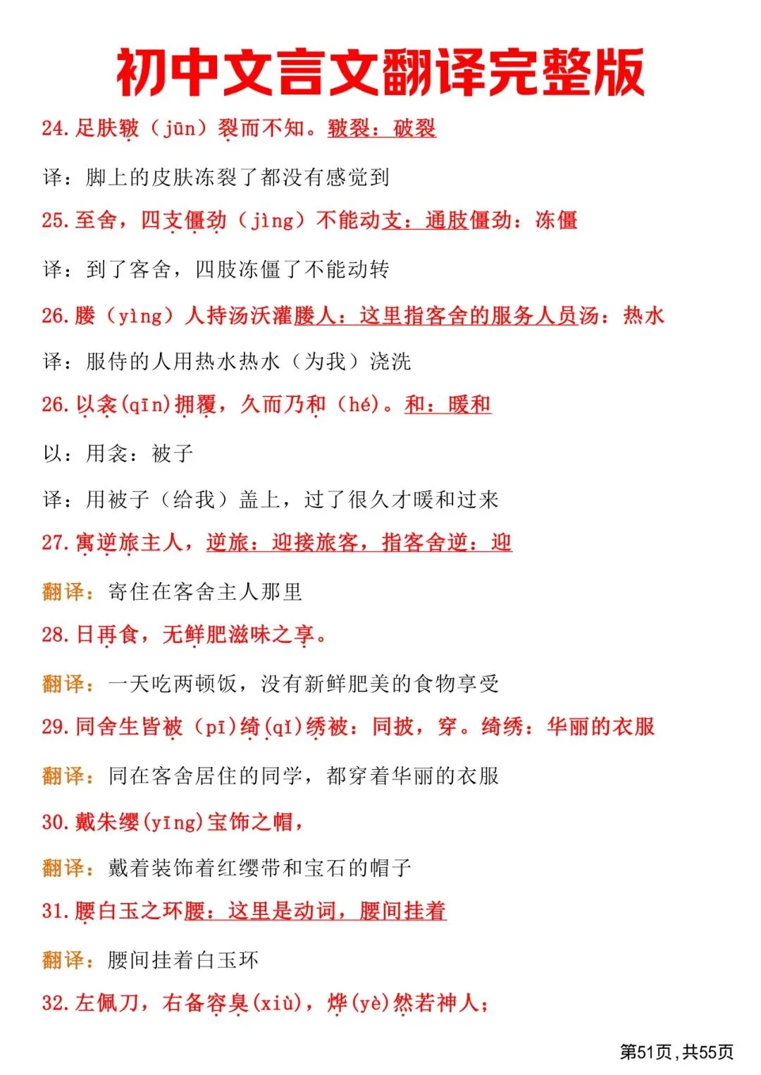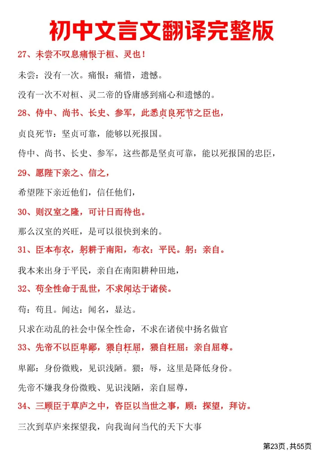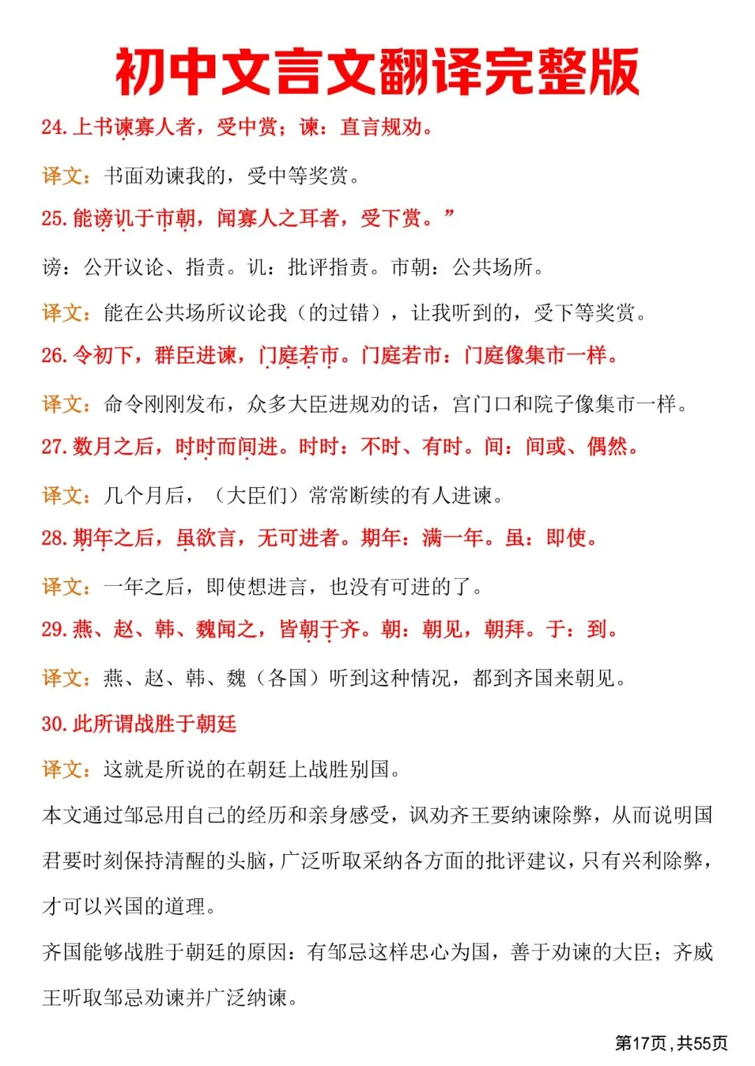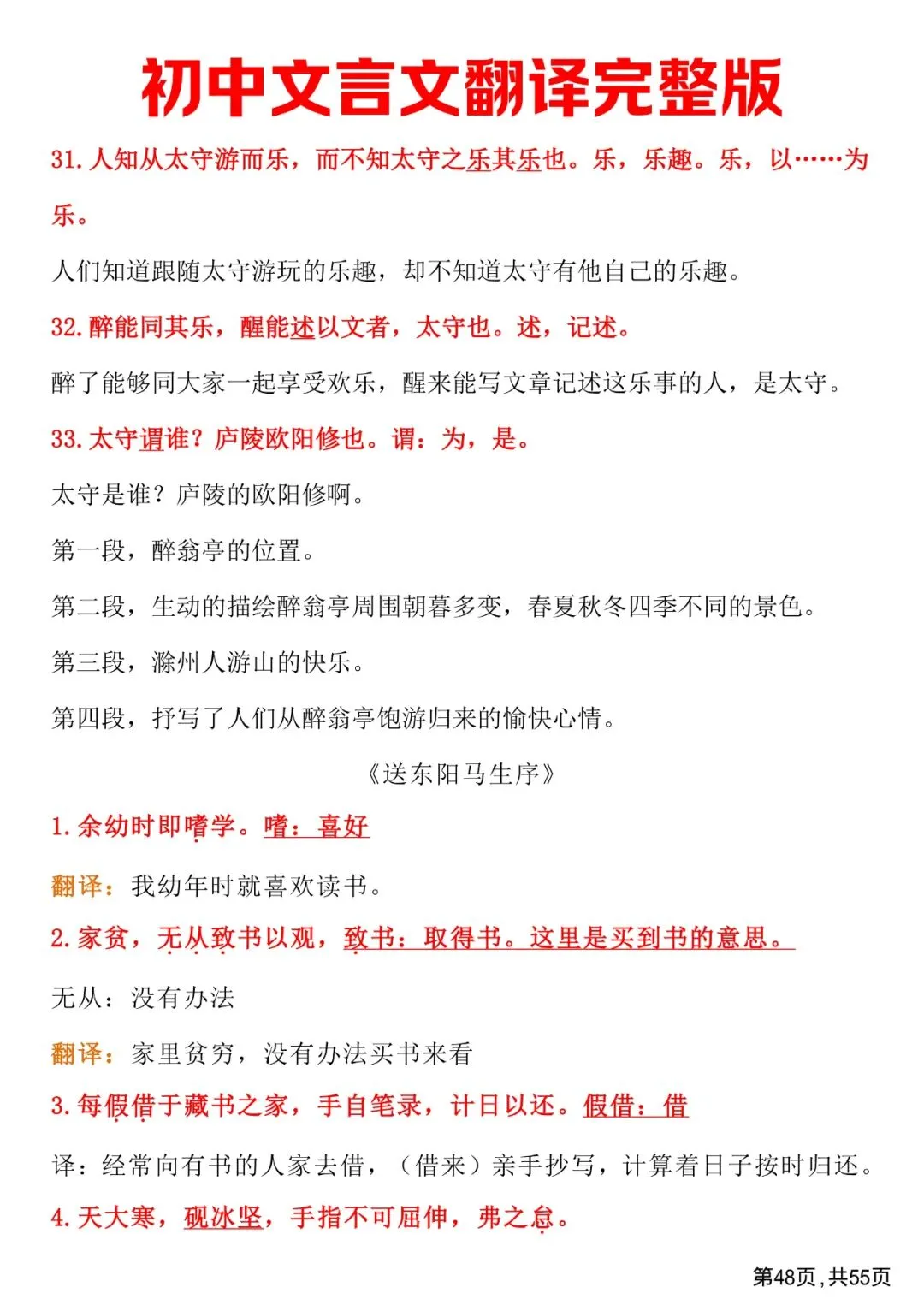 初中文言文翻译完整版,免费下载