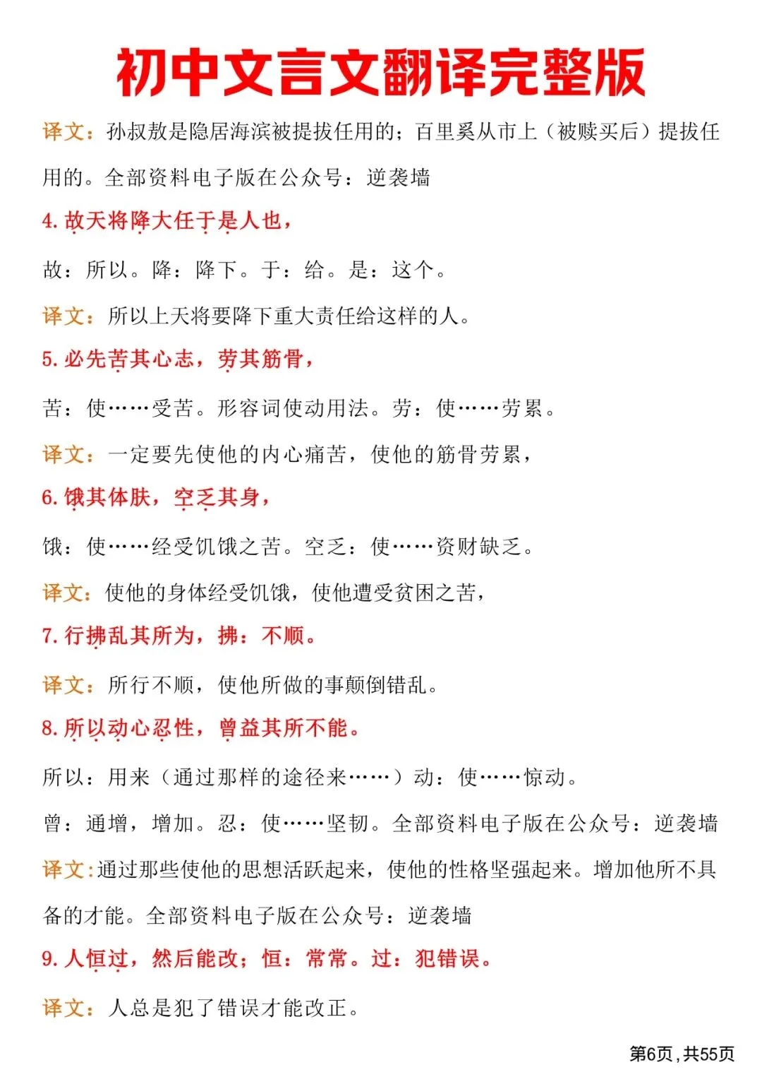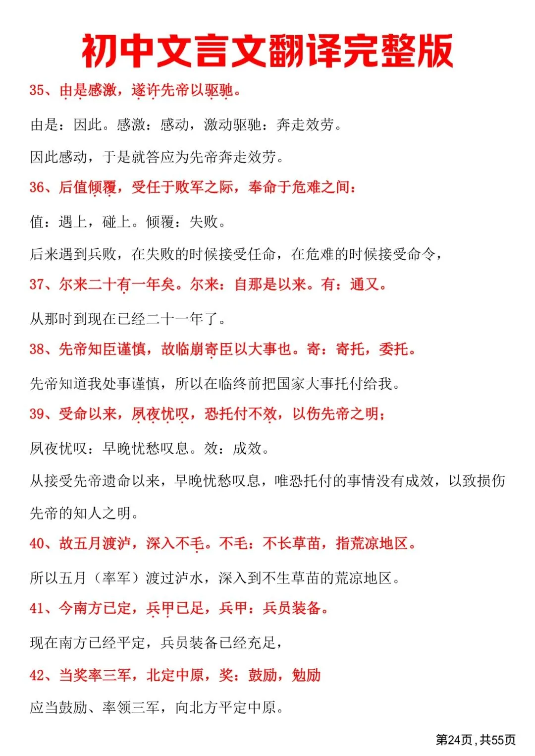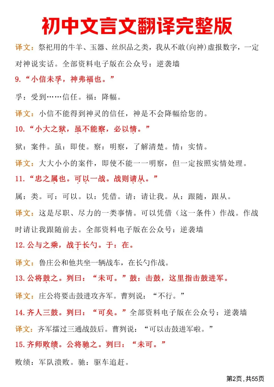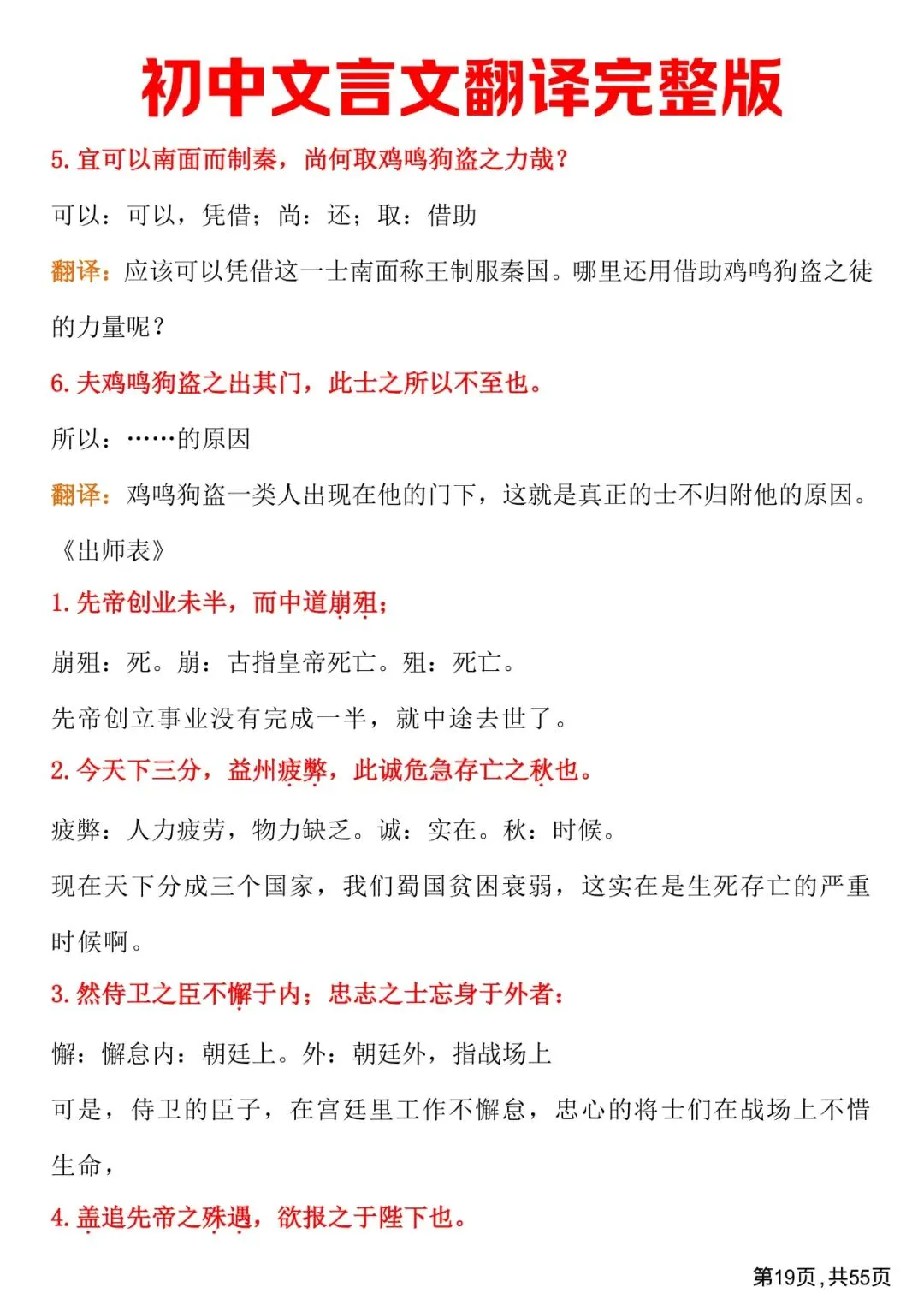 初中文言文翻译完整版,免费下载