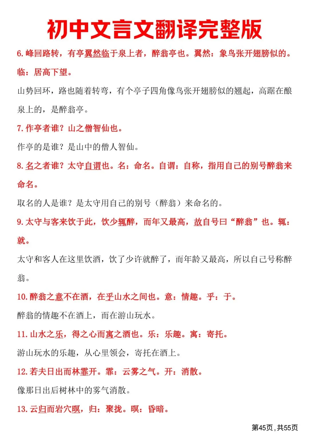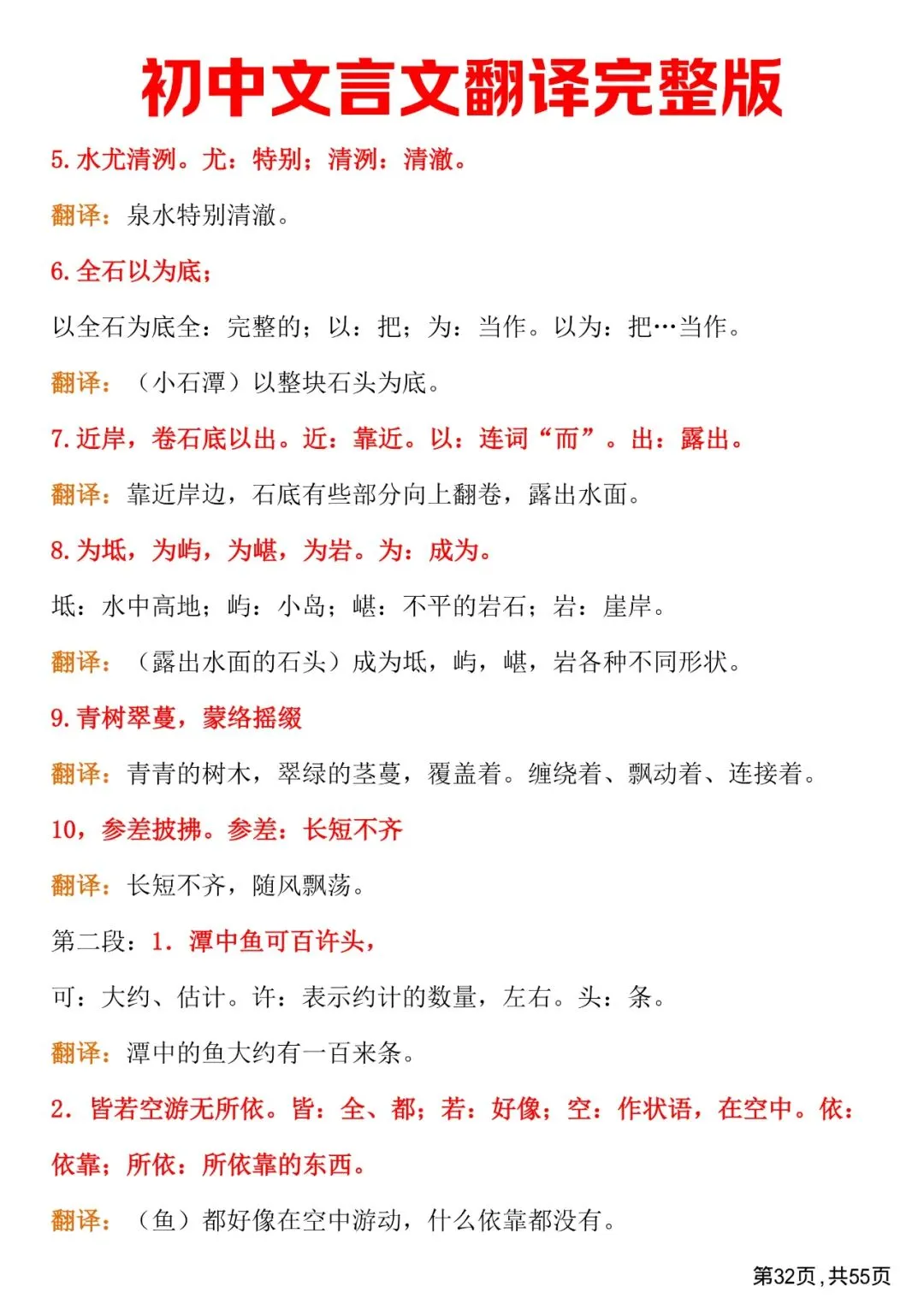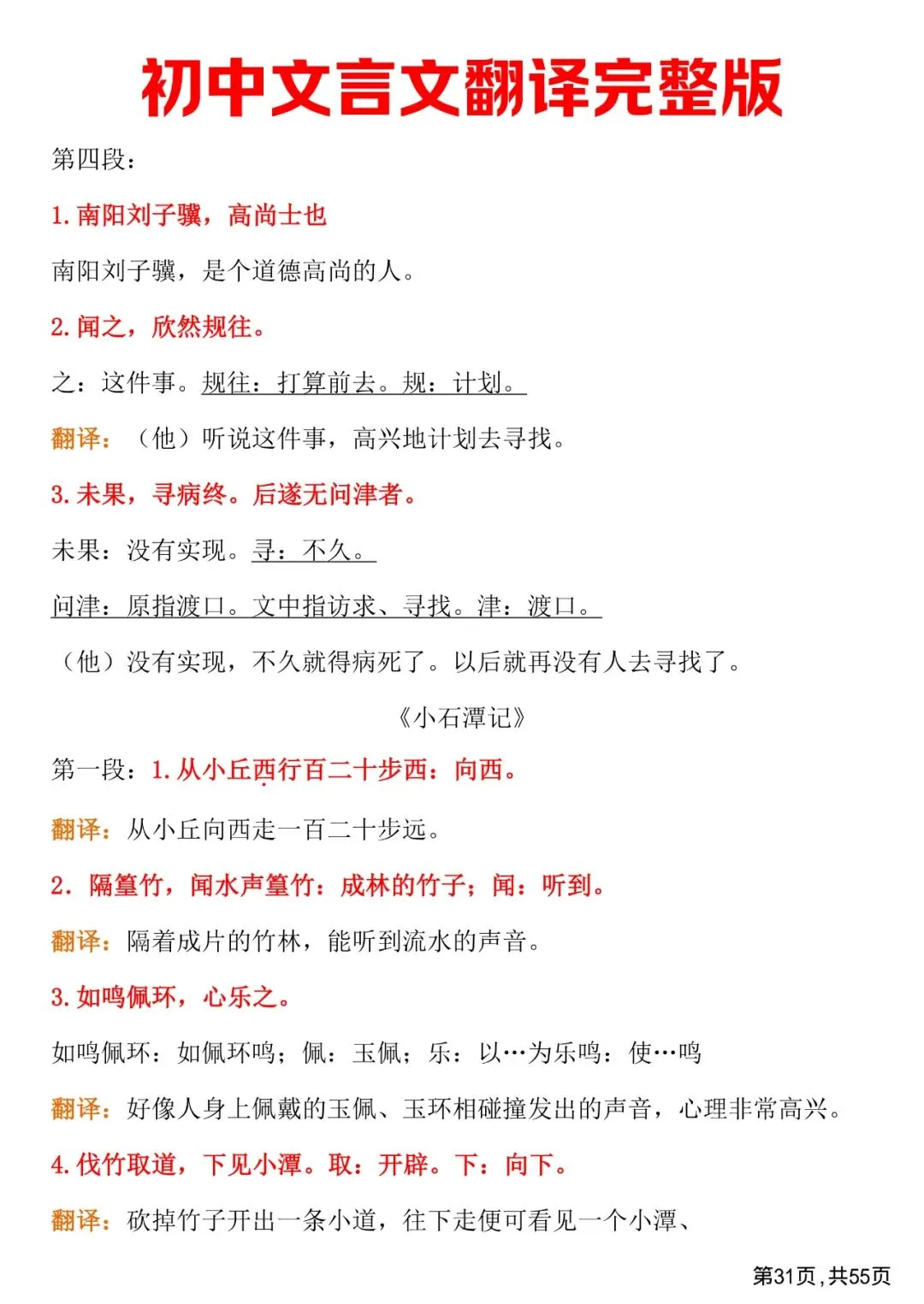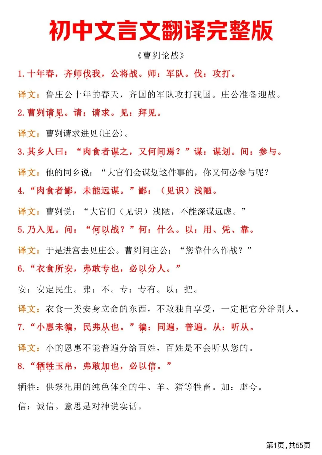 初中文言文翻译完整版,免费下载