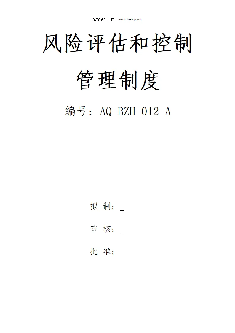 Word |【12】76-安全风险评估和控制管理制度