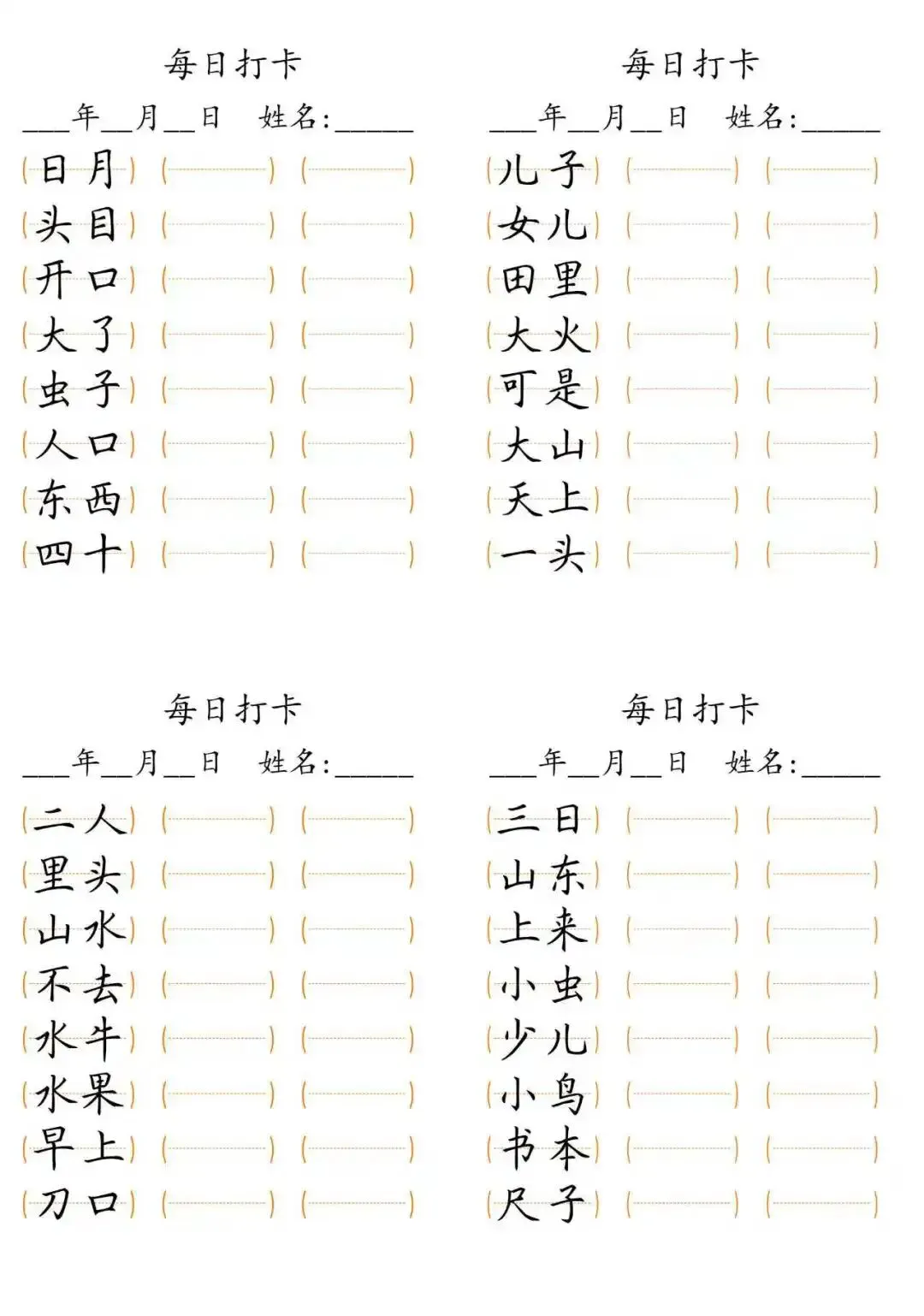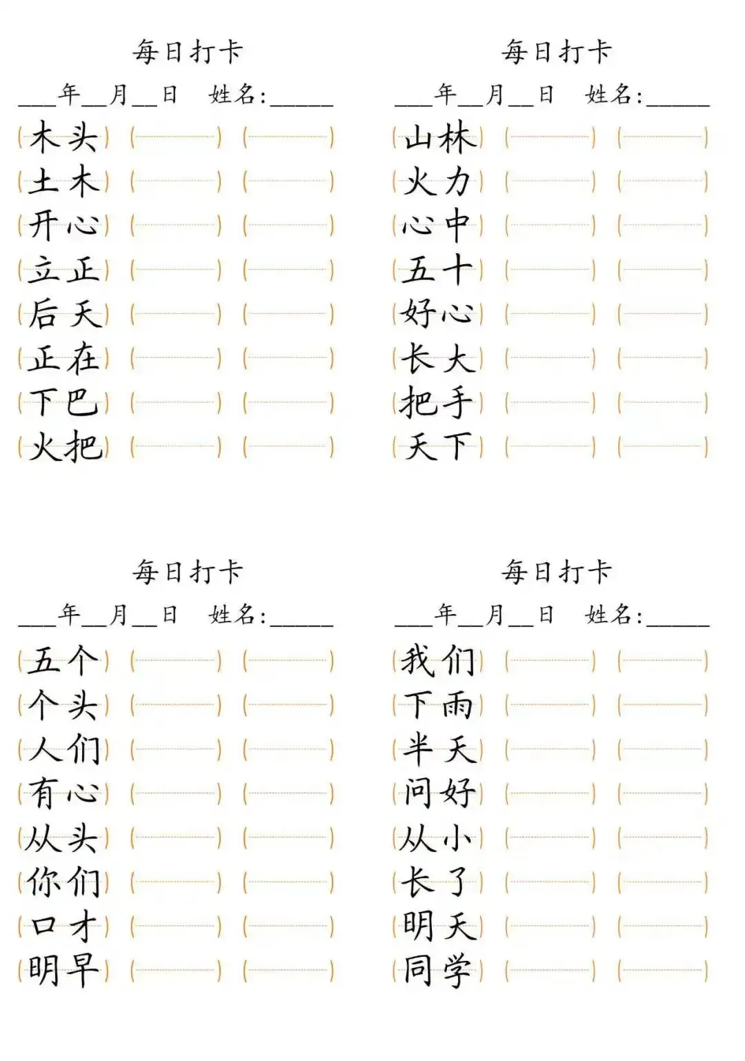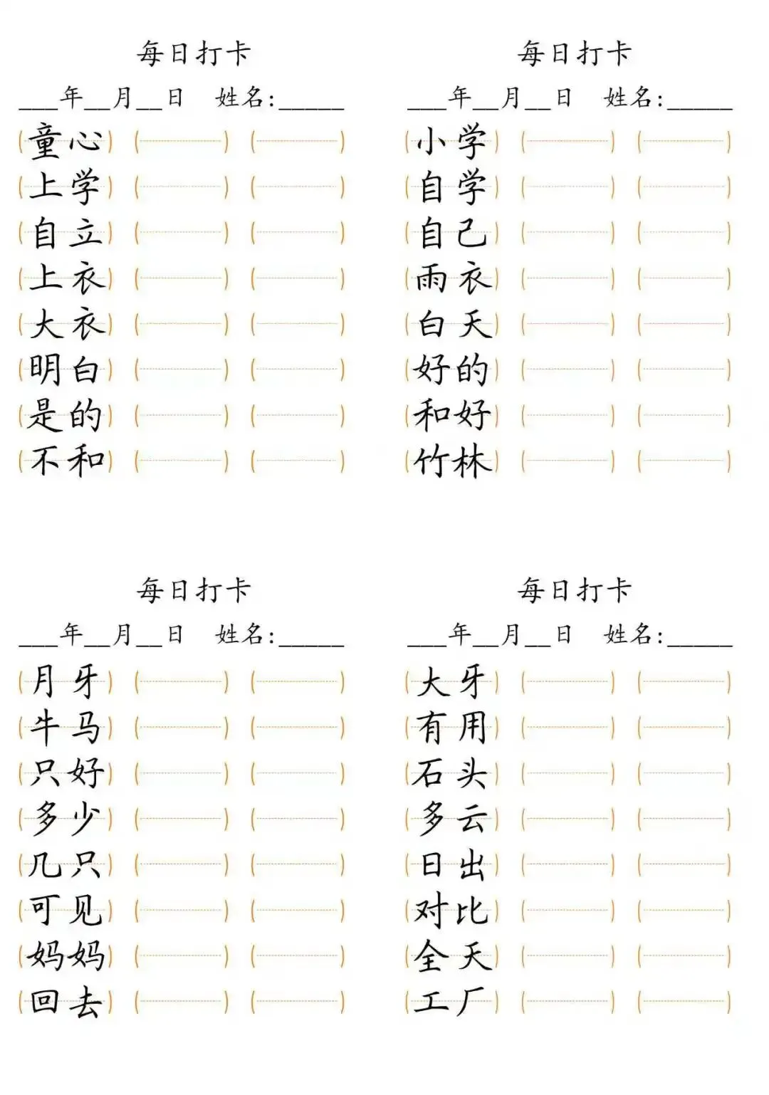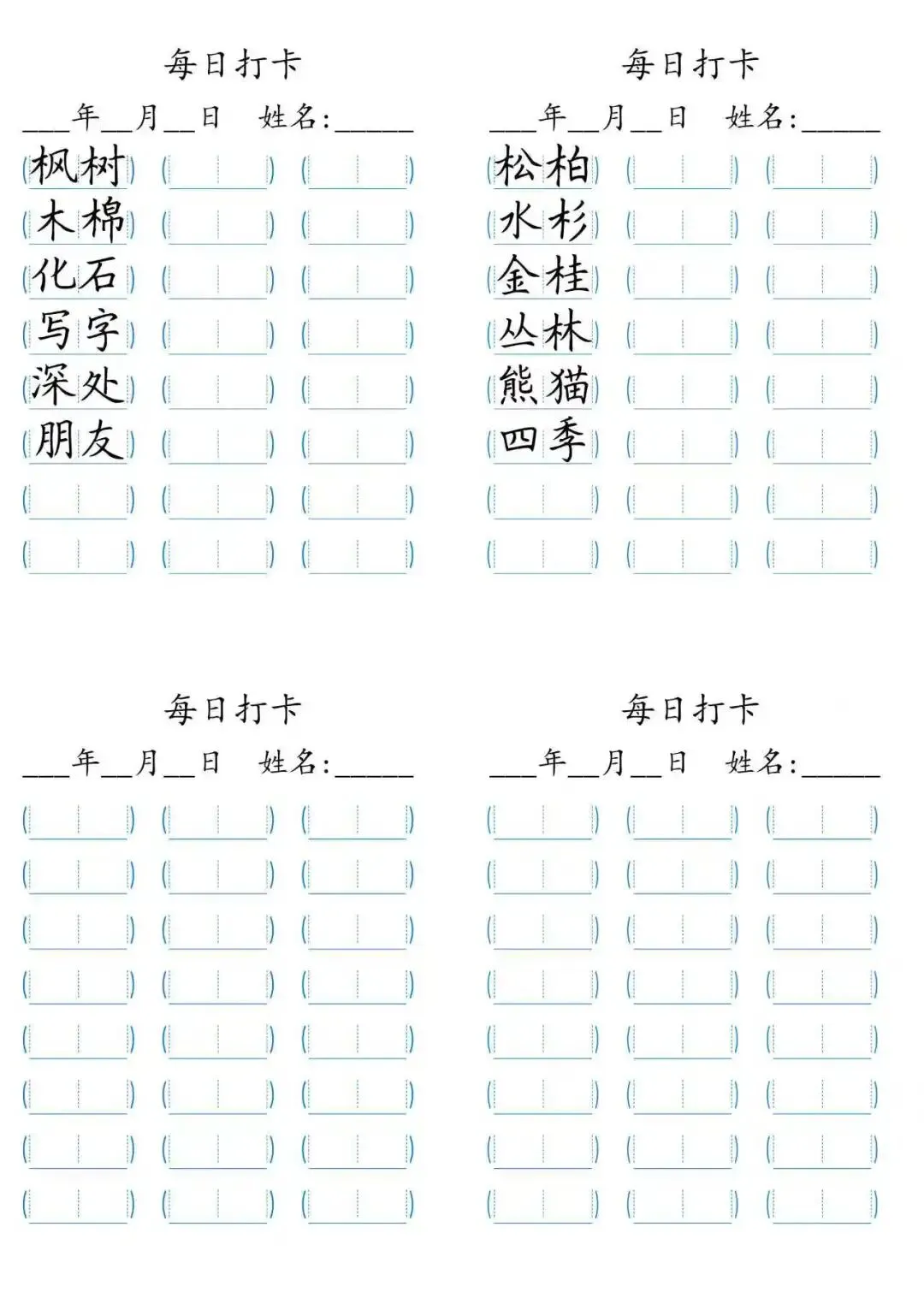 每日打卡 词语打卡括号,15页(可打印)