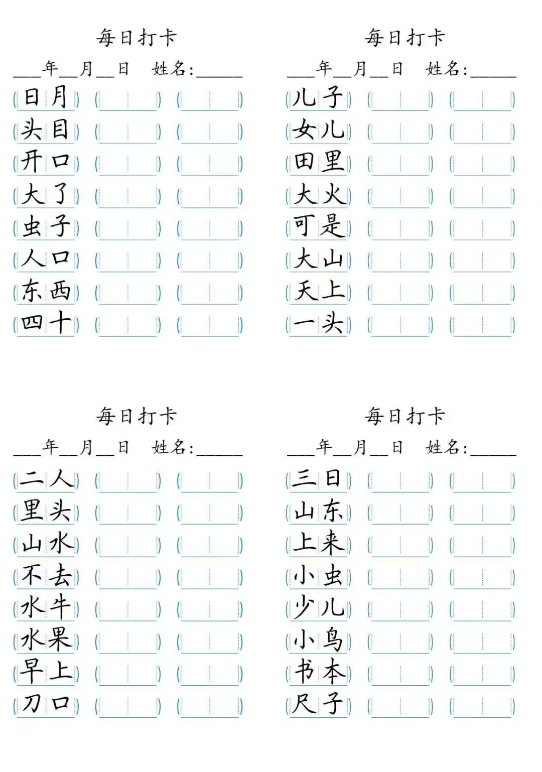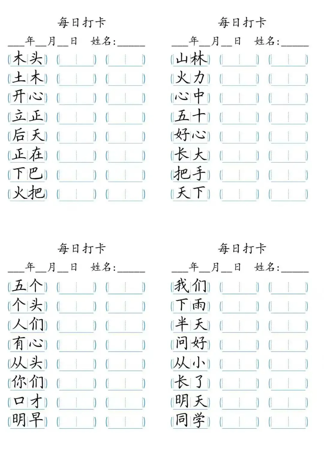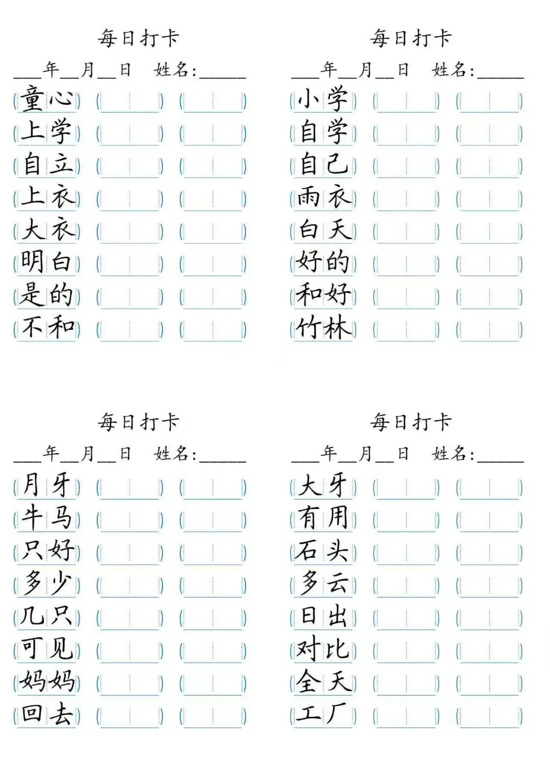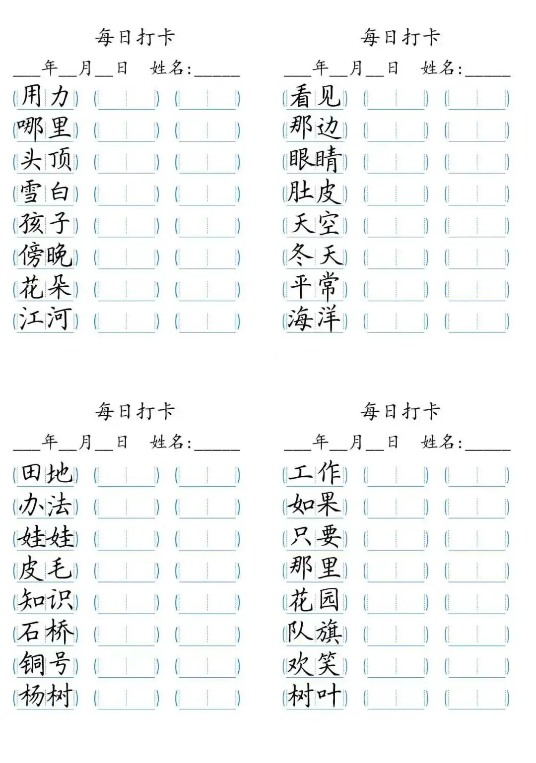 每日打卡 词语打卡括号,15页(可打印)