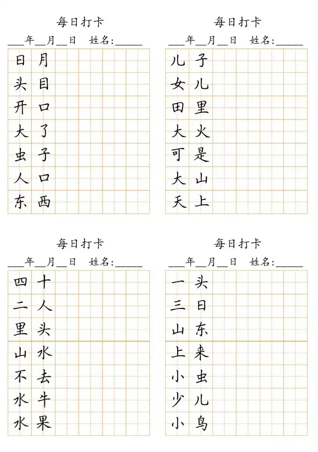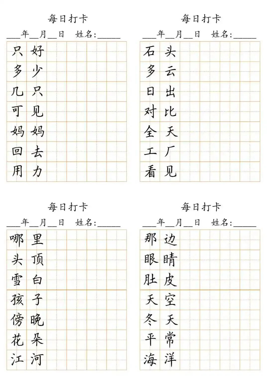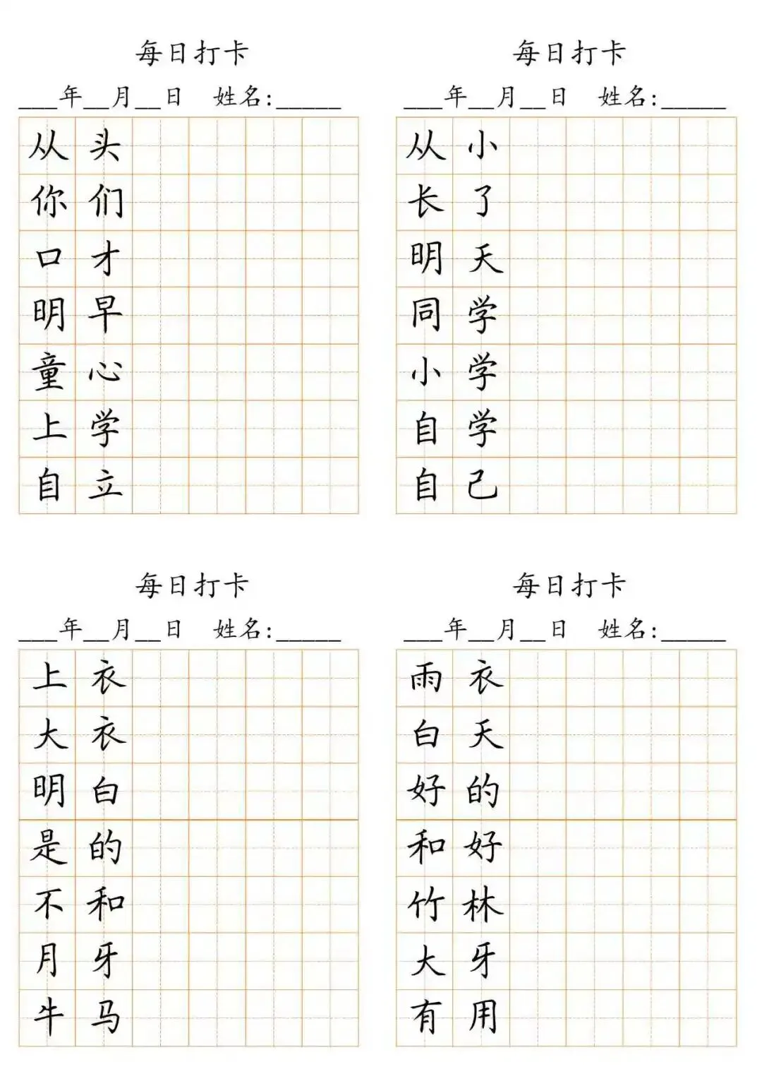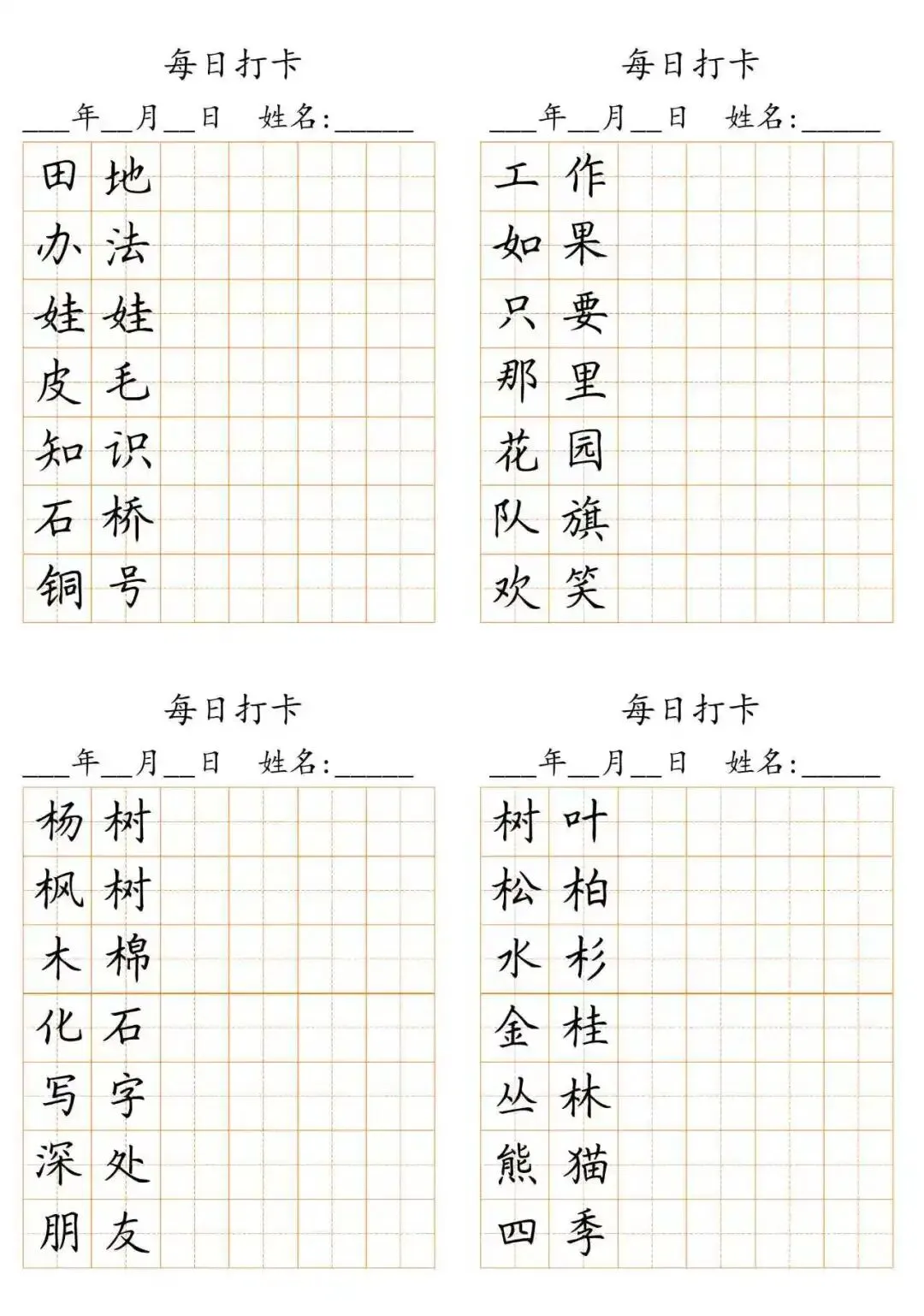 每日打卡 词语打卡括号,15页(可打印)