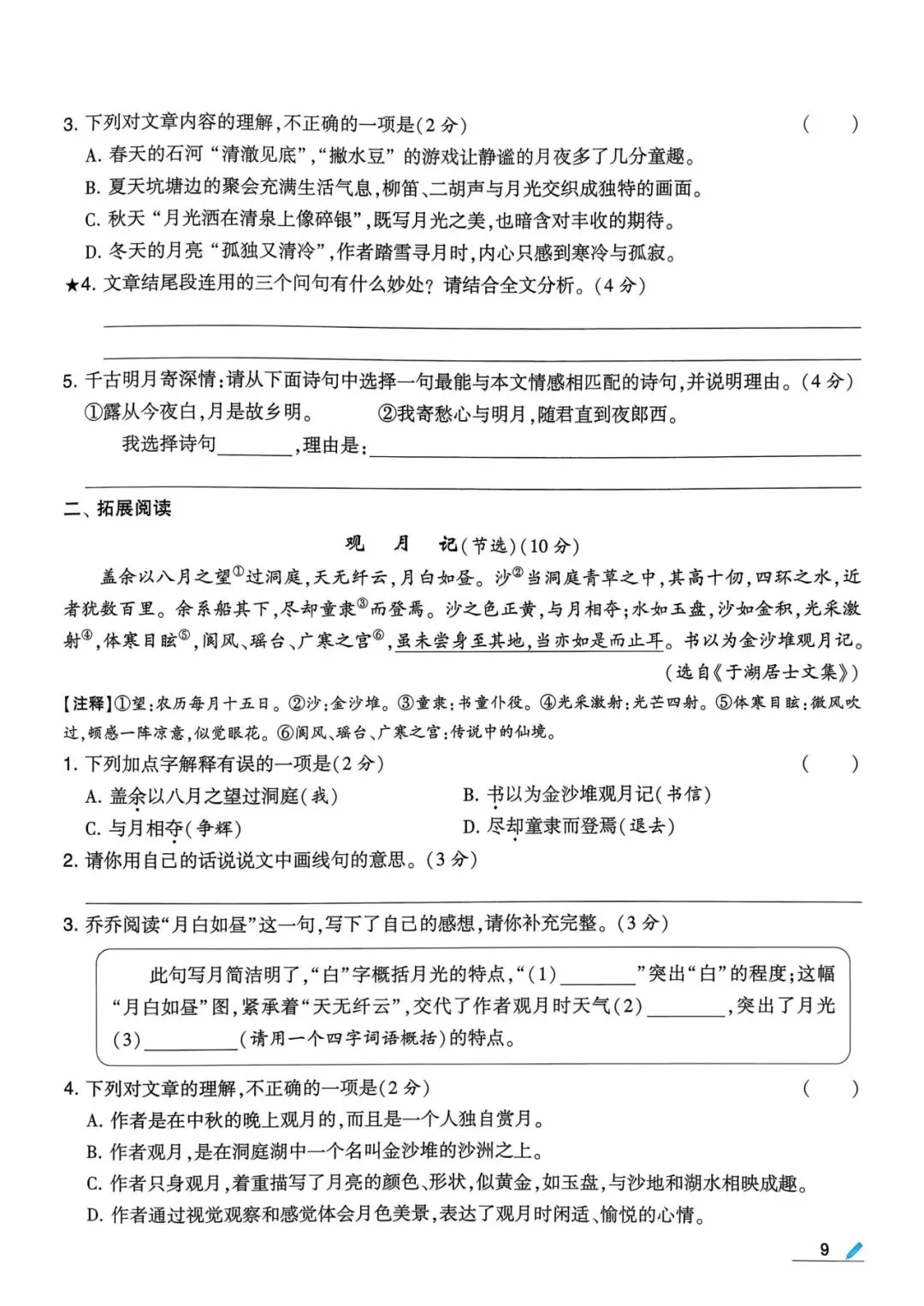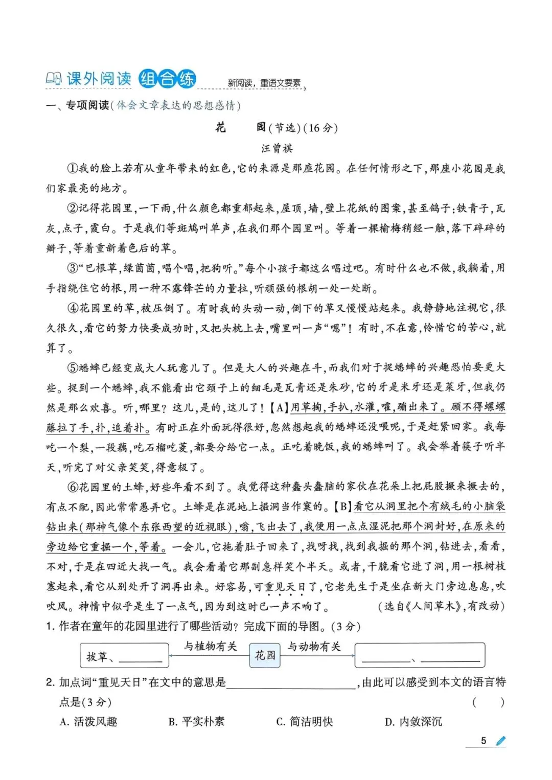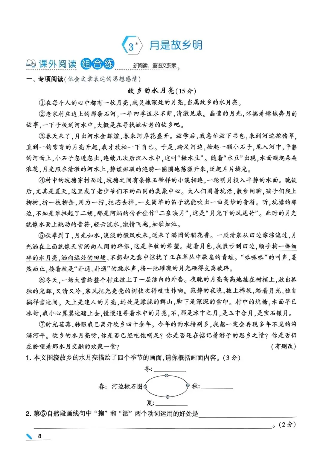 今日分享:五年级下册语文课课练