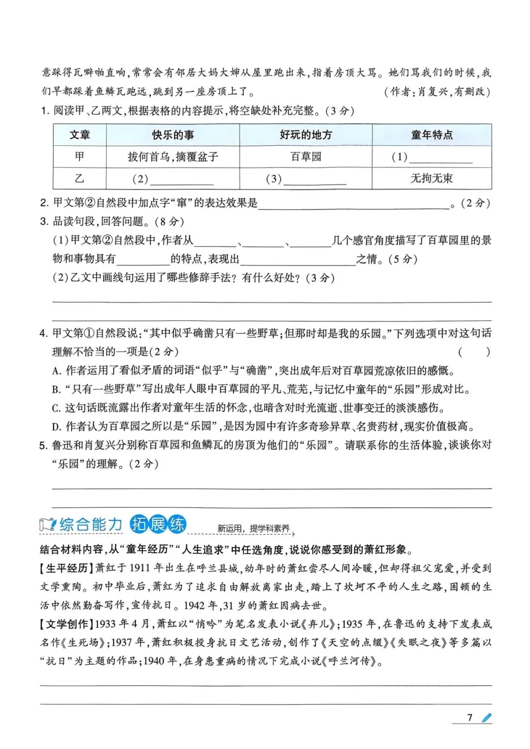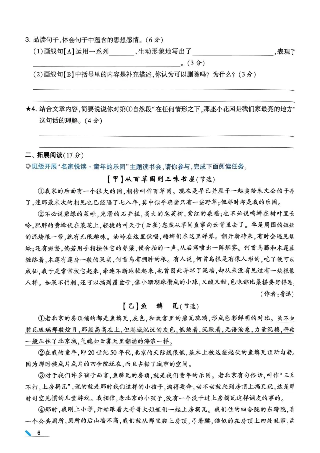 六年级(下)语文口语交际和小练笔及课内仿写