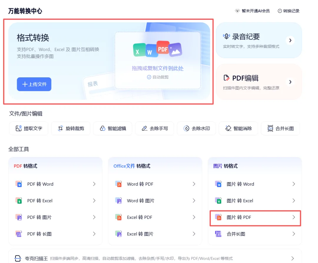 今天,就给你安利一个藏在夸克APP里的“万能转换中心”,不花钱、速度快、还巨清晰,简直是打工人的文档救星!“万能转换中心”除了图片转PDF功能,它还能把PDF转成Word、Excel、图片,甚至能把多张图片合成一个长图 。平时工作生活中遇到的文件格式问题,基本都能在这里解决。关键是,电脑端图片转PDF功能目前限时免费,不花钱、速度快、画质还高清。更贴心的是,哪怕你拍得歪七扭八,它也能自动识别边缘、切除多余背景,生成整洁的PDF。