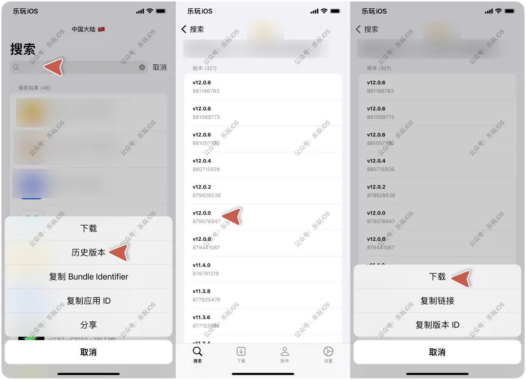打开DLiPA,搜索需要降级的应用,点击该应用,点击「历史版本」,选择要下载的版本号,点击「下载」即可