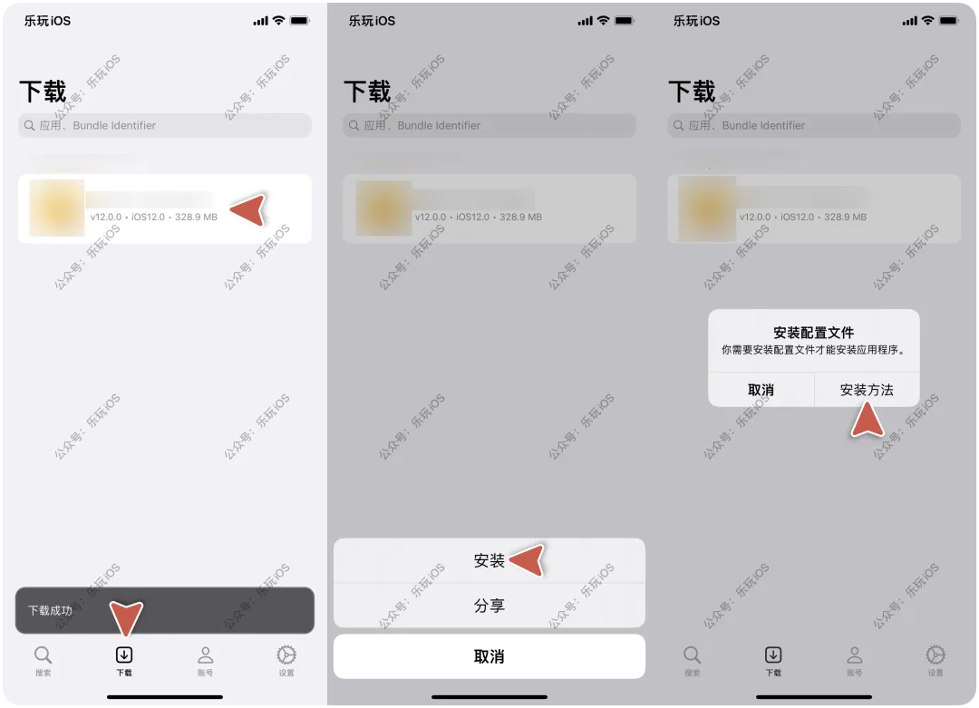 1、点击底部的「下载」,点击下载好的应用,点击「安装」,弹窗中点击「安装方法」