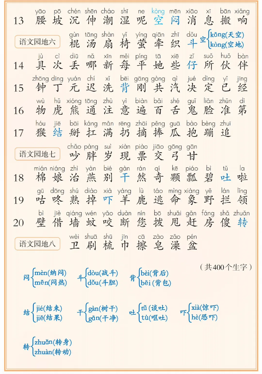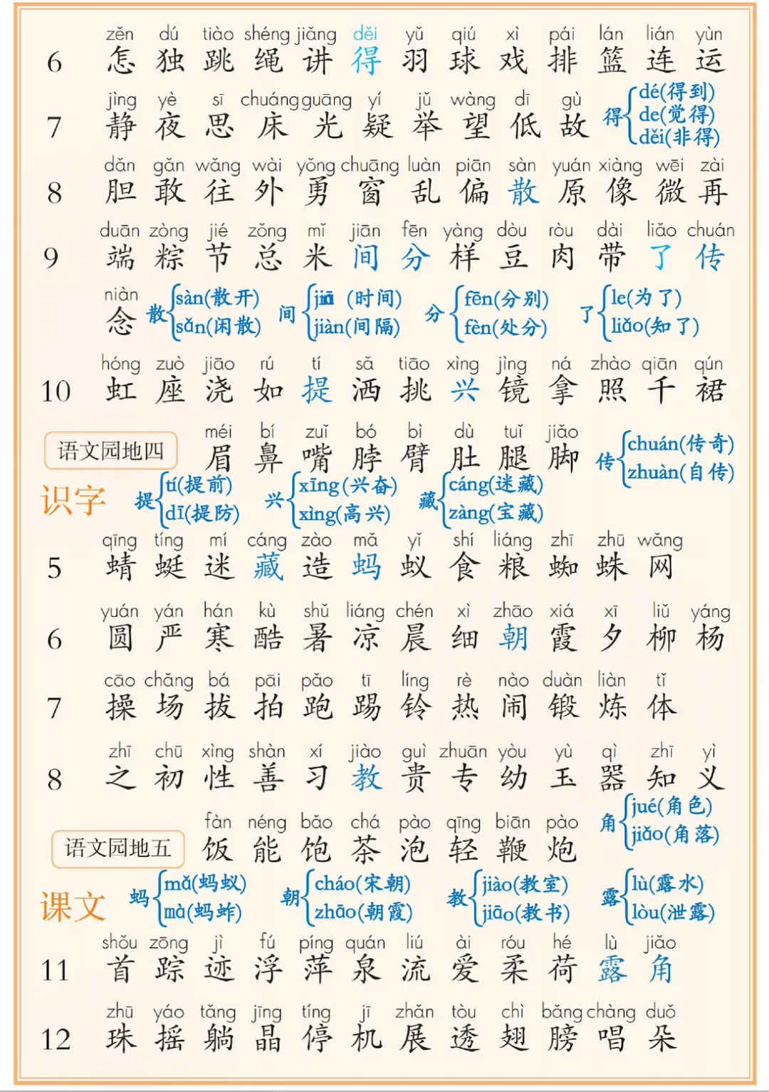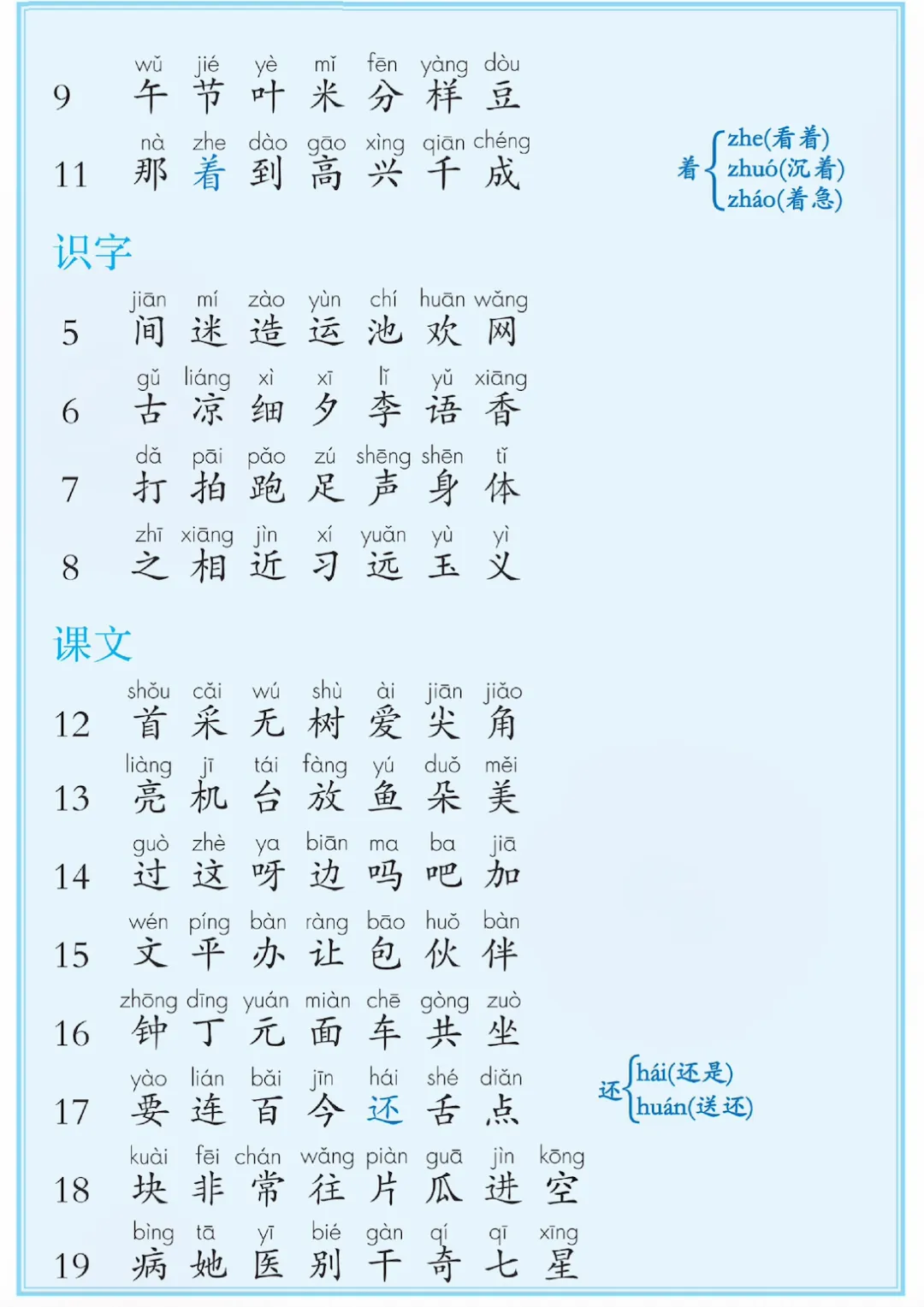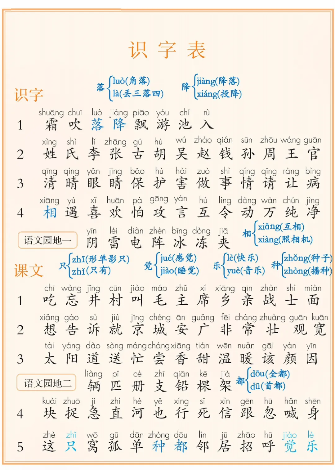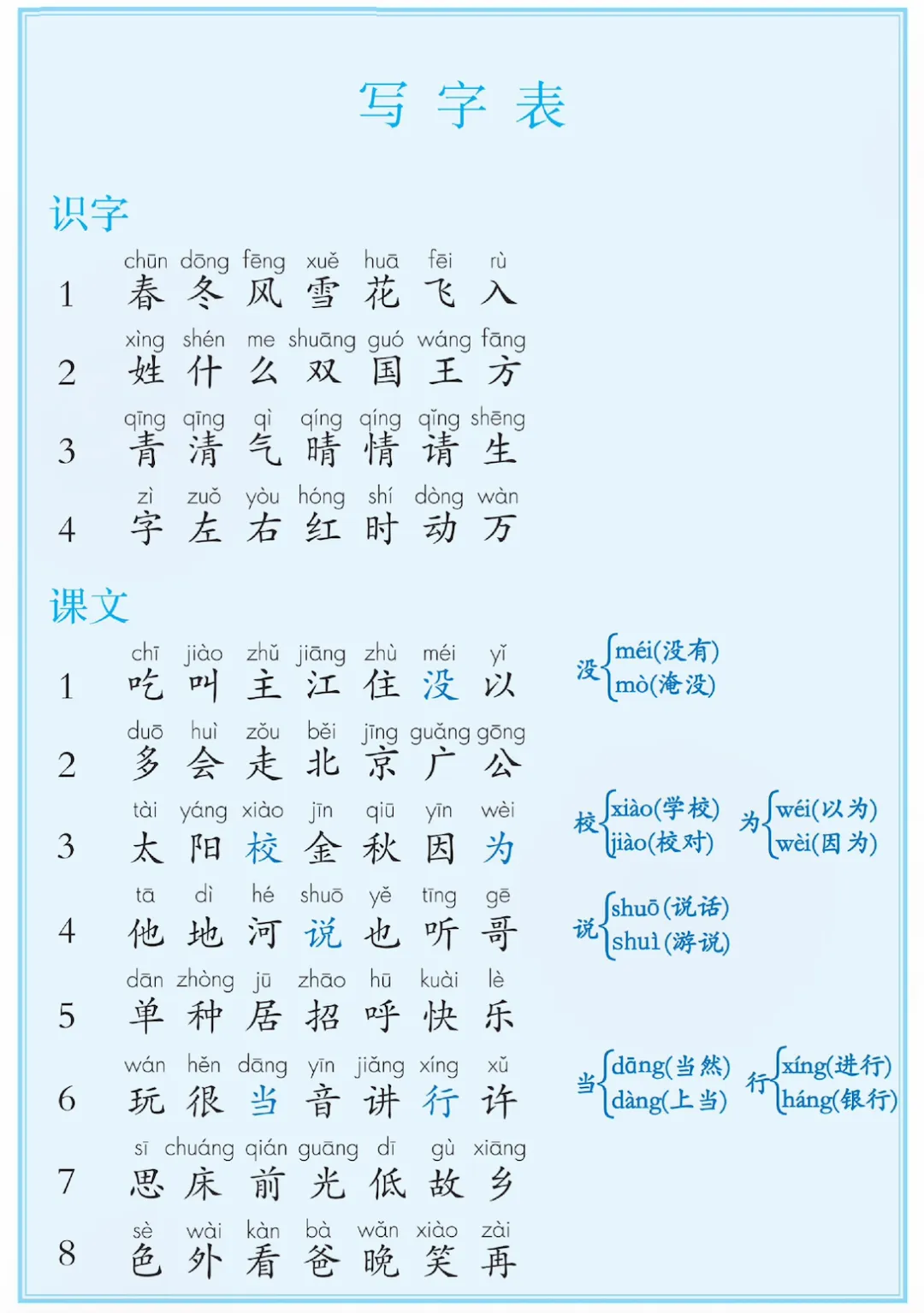 新一年级下册语文课后三表汇总,电子版可打印