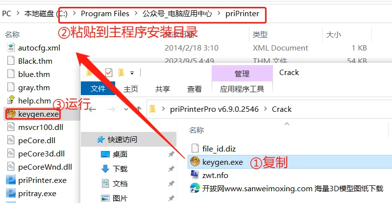 回到安装包目录,进入Crack文件夹,复制里面的补丁文件keygen.exe到主程序安装目录,并以管理员身份运行激活
