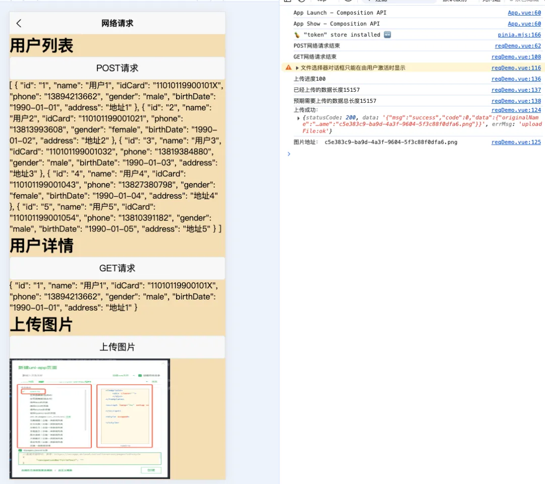 展示和上传图片功能对应的服务端是我自己写的,但通常情况下,大家应该都是用各种云提供的OSS,按照官方文档处理即可,我只是演示一下uni-app相关API(chooseImage、uploadFile)。