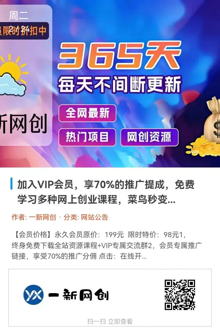 扫描上方二维码进入【一新网创】资源站,免费下载互联网创业资源!